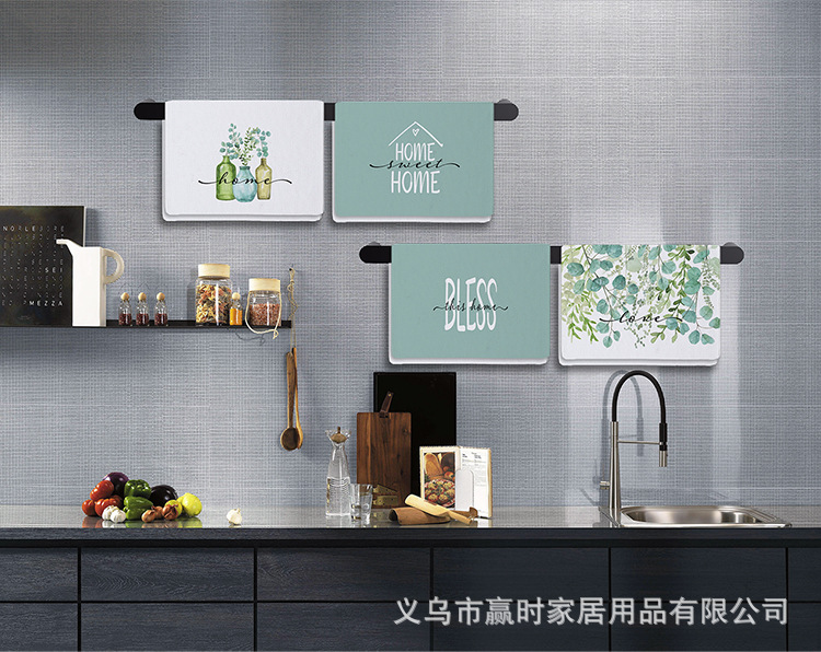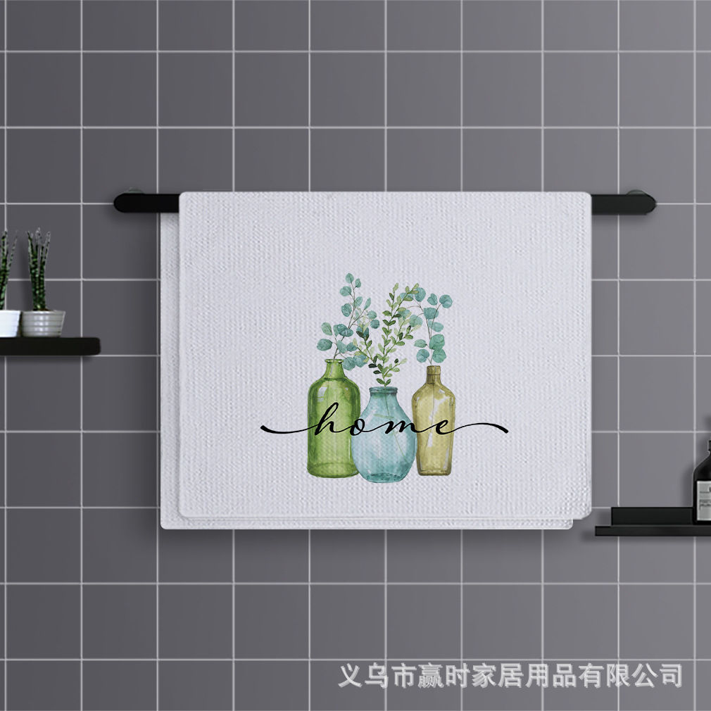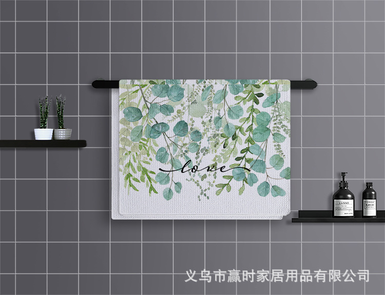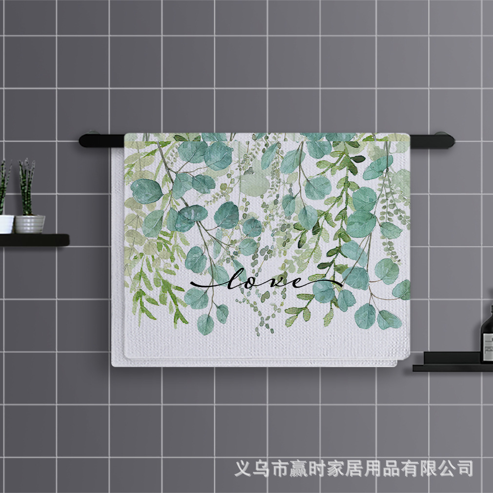 국경 간 뜨거운 판매 녹색 식물 인쇄 땀 흡수성 빠른 건조 스포츠 타월 마이크로 섬유 주방 가정용 수건 해외 무역 독점스토어 가기