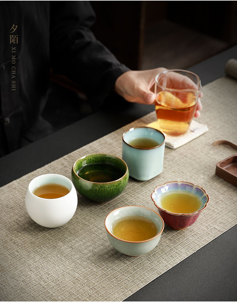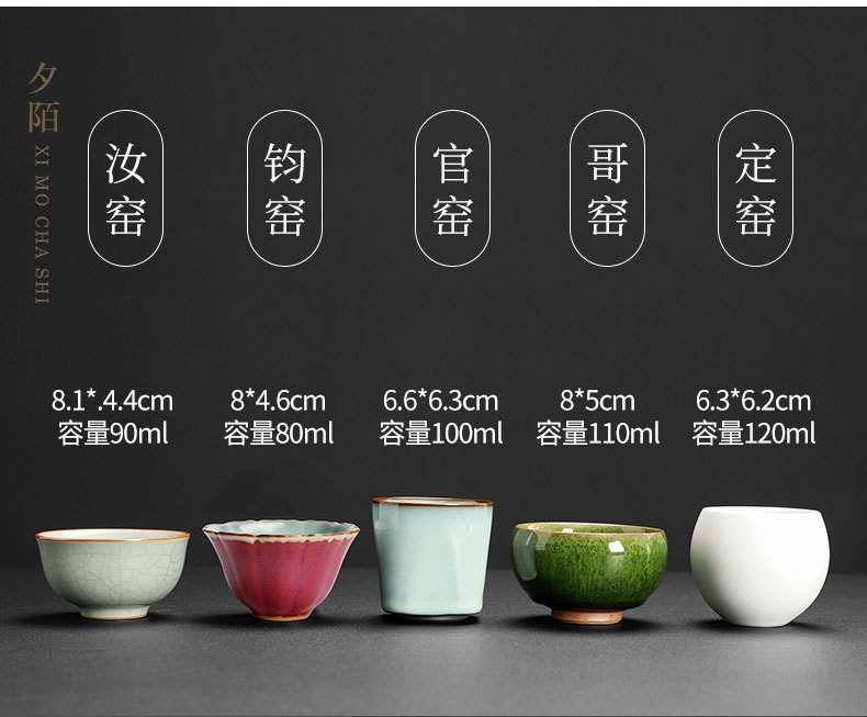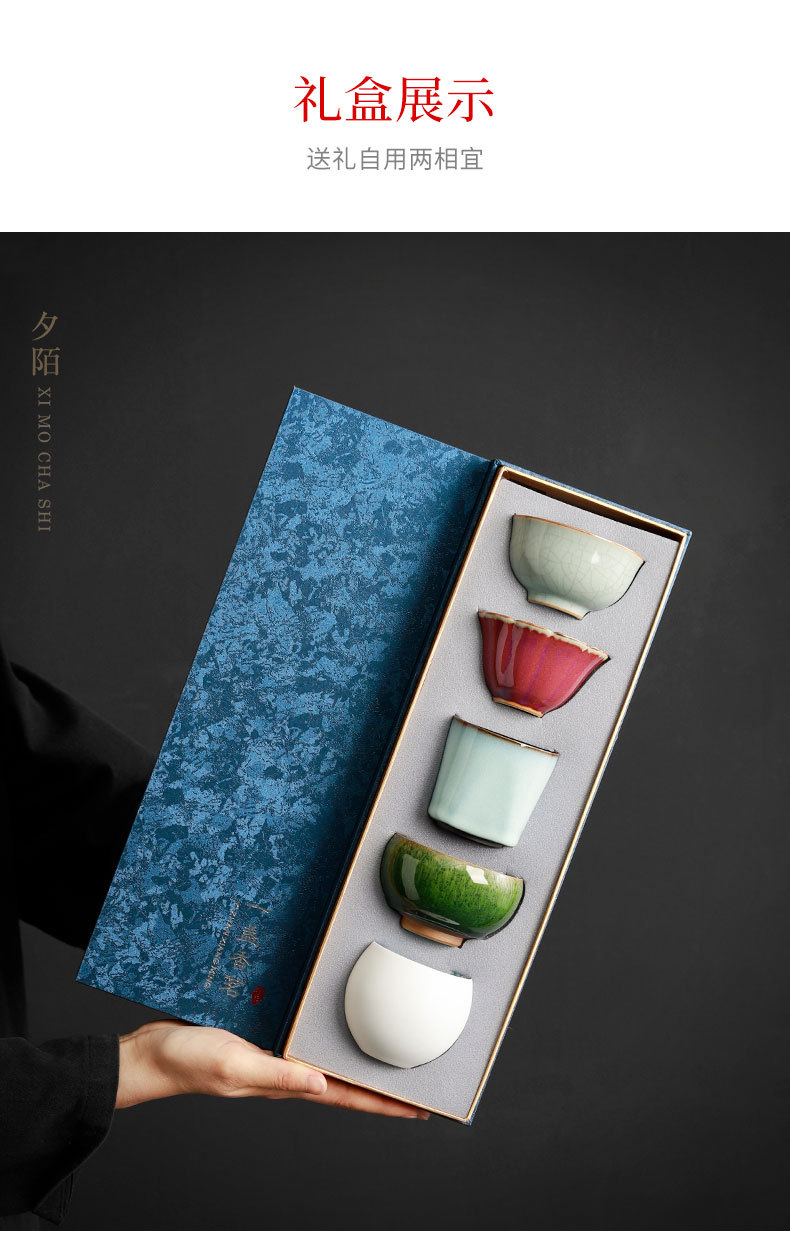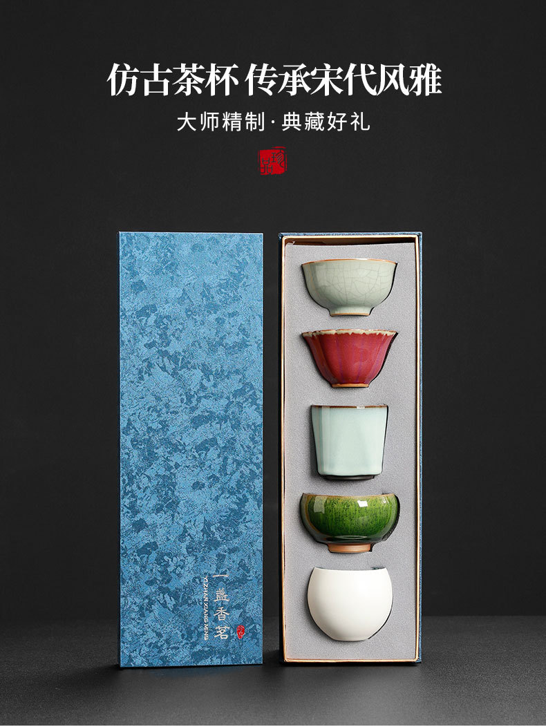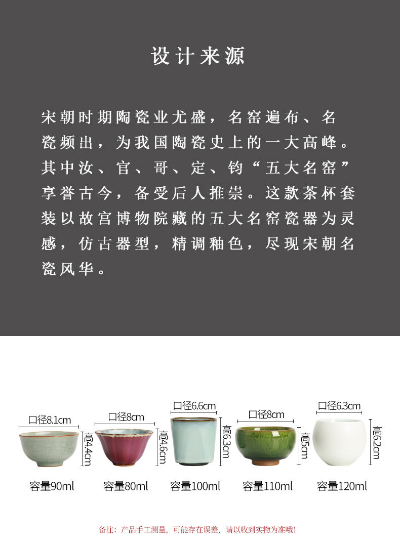 5 개의 유명한 가마 차 세트 세트 쿵푸 티 컵 세라믹 마스터 컵 하이 엔드 티 컵 차 그릇 궁전 박물관 창조적 인 선물