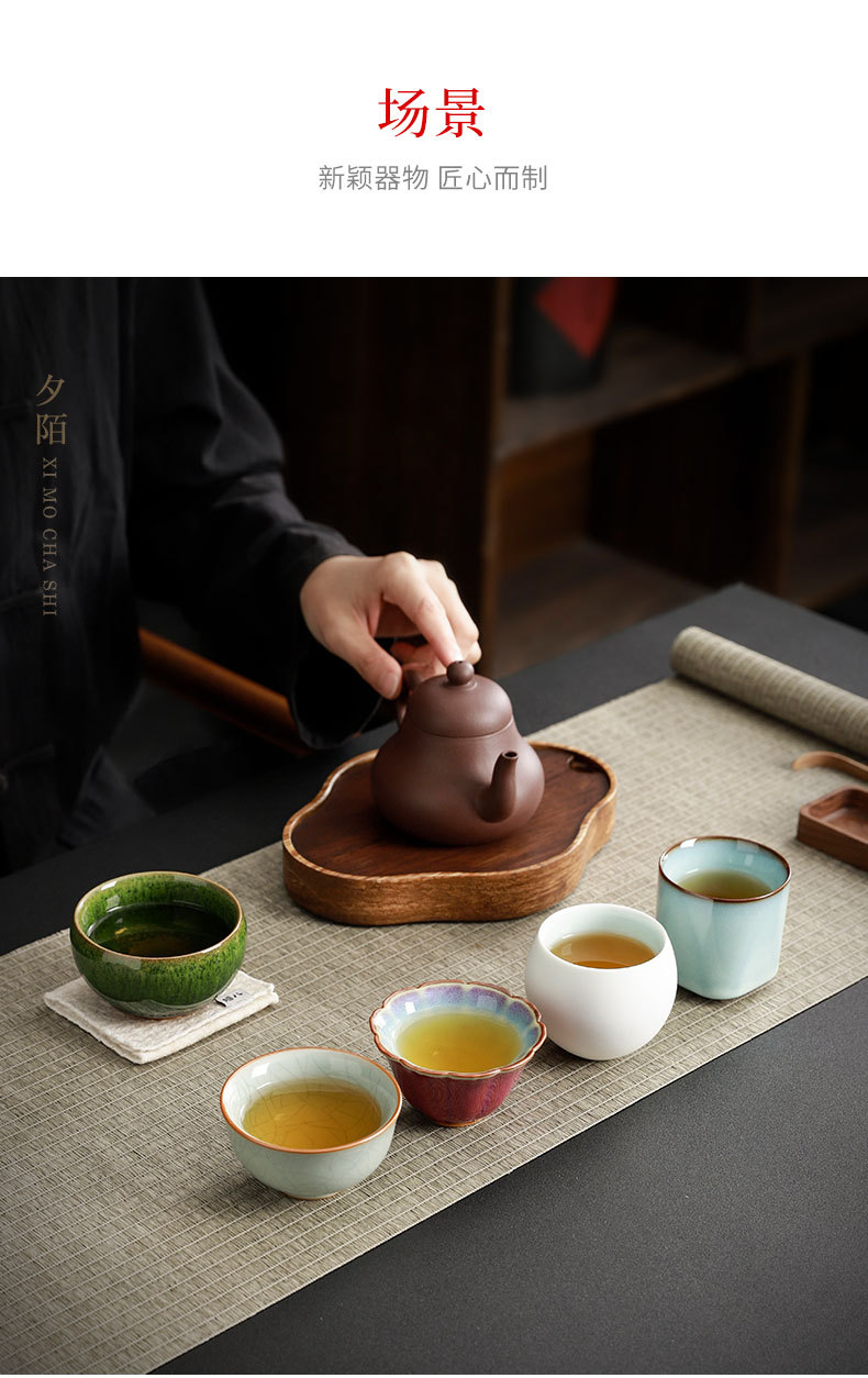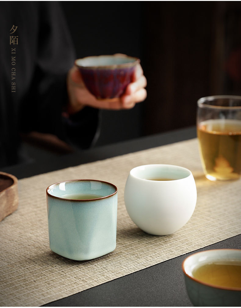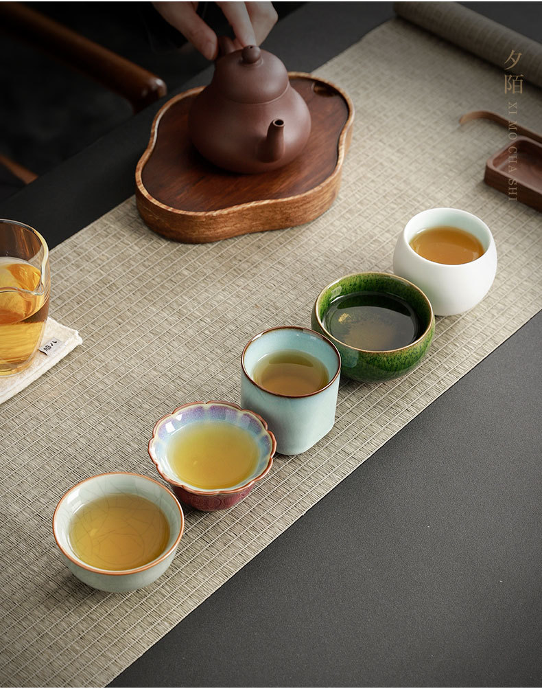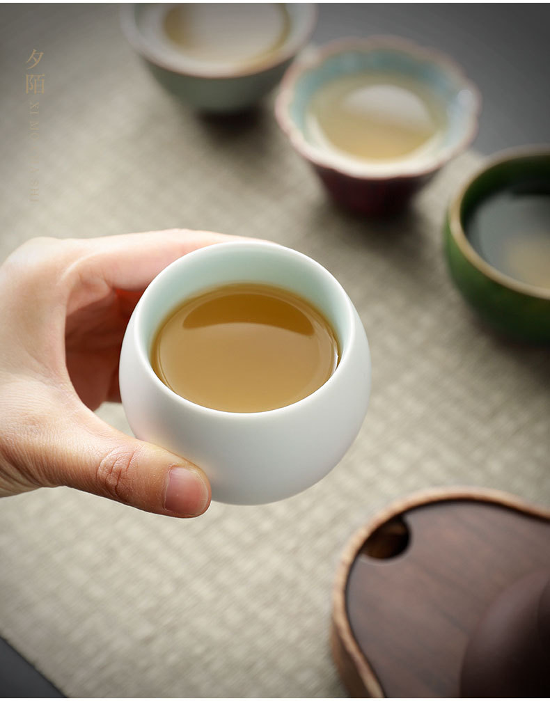 5 개의 유명한 가마 차 세트 세트 쿵푸 티 컵 세라믹 마스터 컵 하이 엔드 티 컵 차 그릇 궁전 박물관 창조적 인 선물