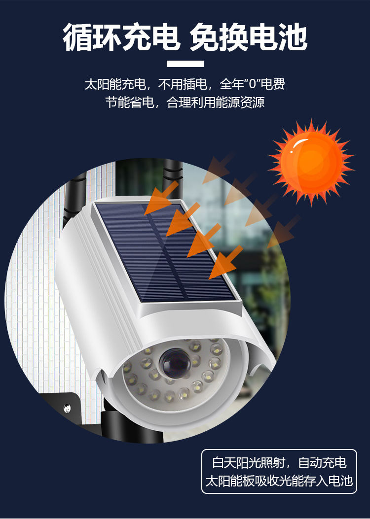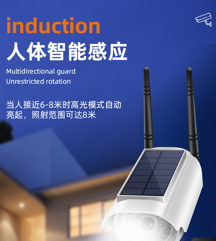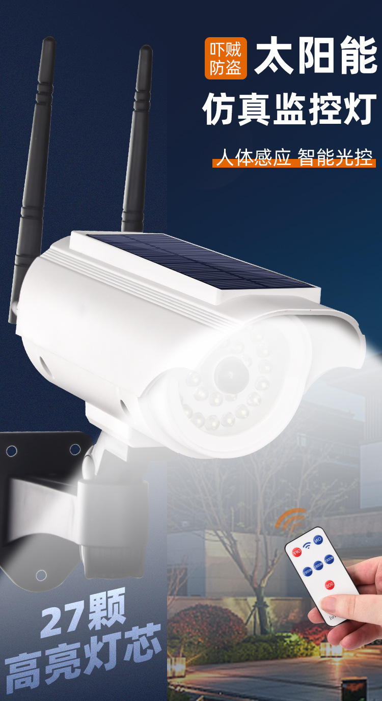 벽 램프 유도 모니터링 안티 도둑 램프 원격 제어 강한 빛 카메라 가짜 LED 태양 무선 모니터링