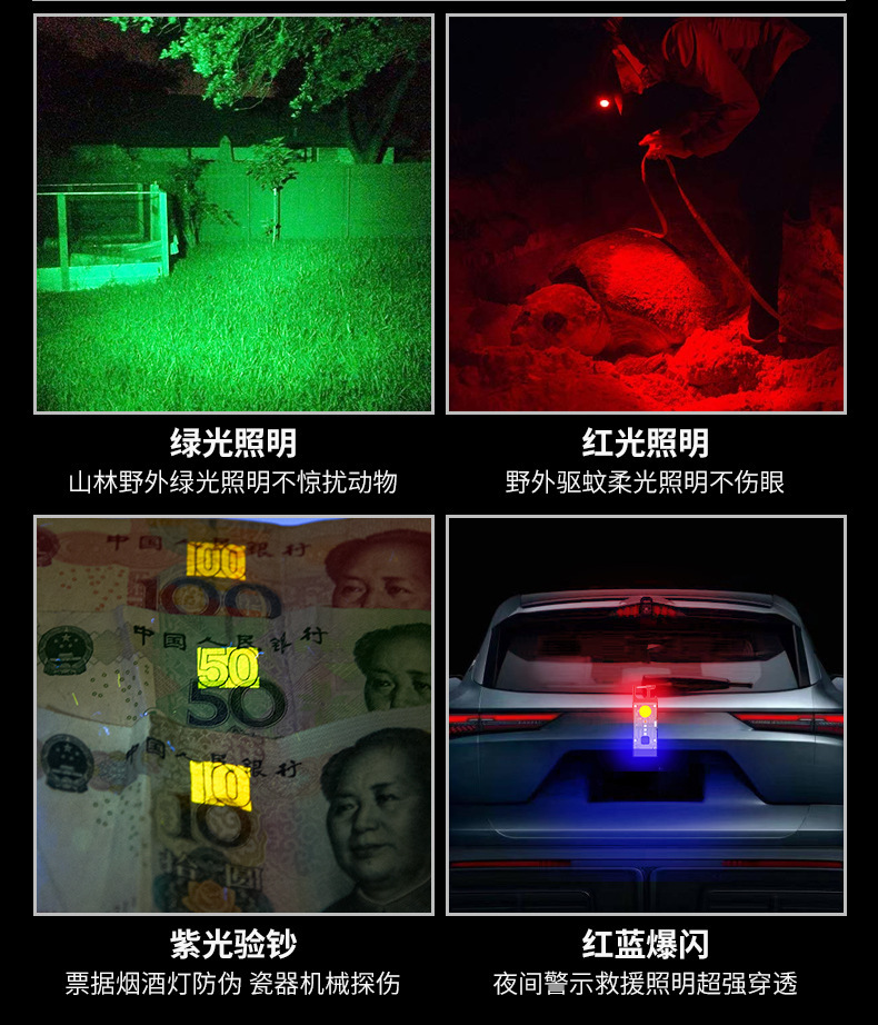 태양열 키체인 라이트 충전식 손전등 알루미늄 합금 고휘도 미니 COB 작업등 야외 비상용