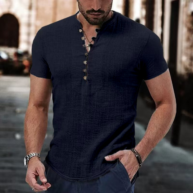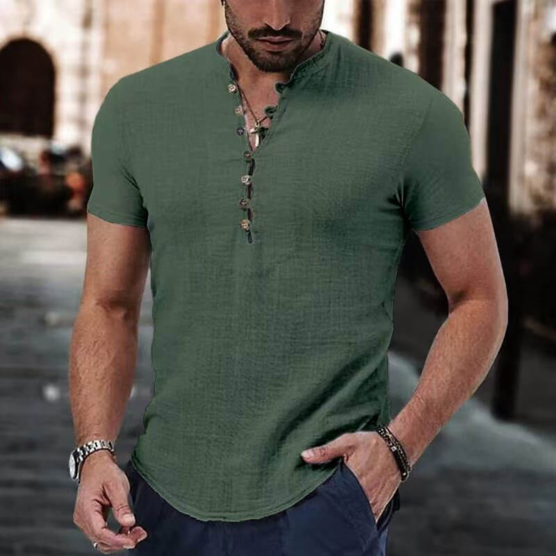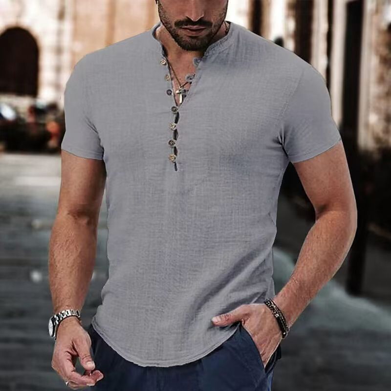 2023 독립 역 국경 최신 남성 리넨 캐주얼 셔츠 일반 V 넥 여름 캐주얼 의류