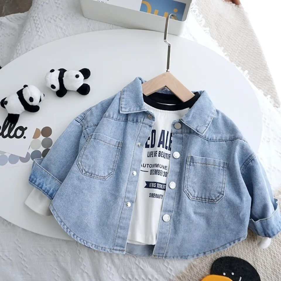 어린이 셔츠 부드러운 데님 얇은 재킷 어린이 봄과 가을 소년과 소녀 아기 캐주얼 셔츠 어린이 빛 데님 트렌디 탑스토어 가기