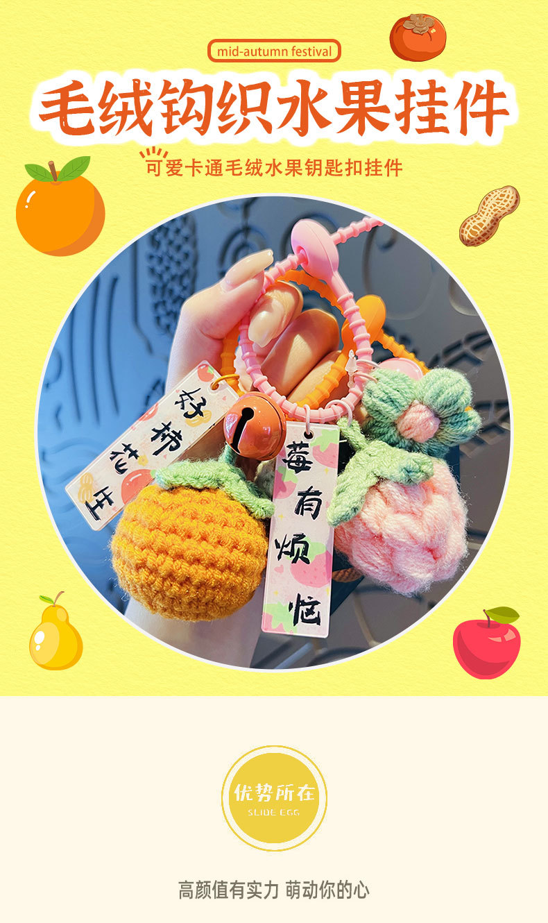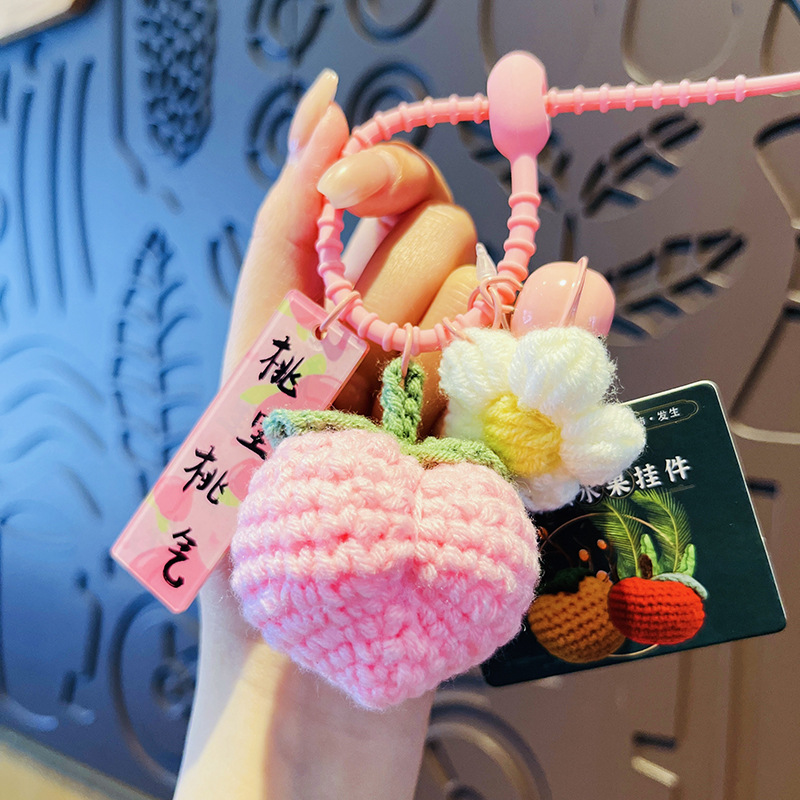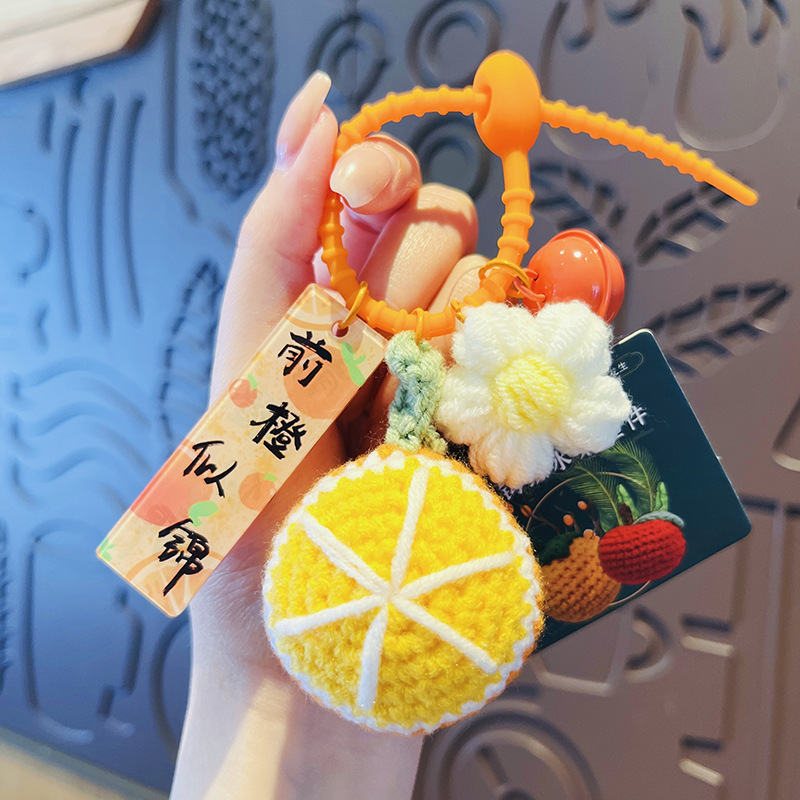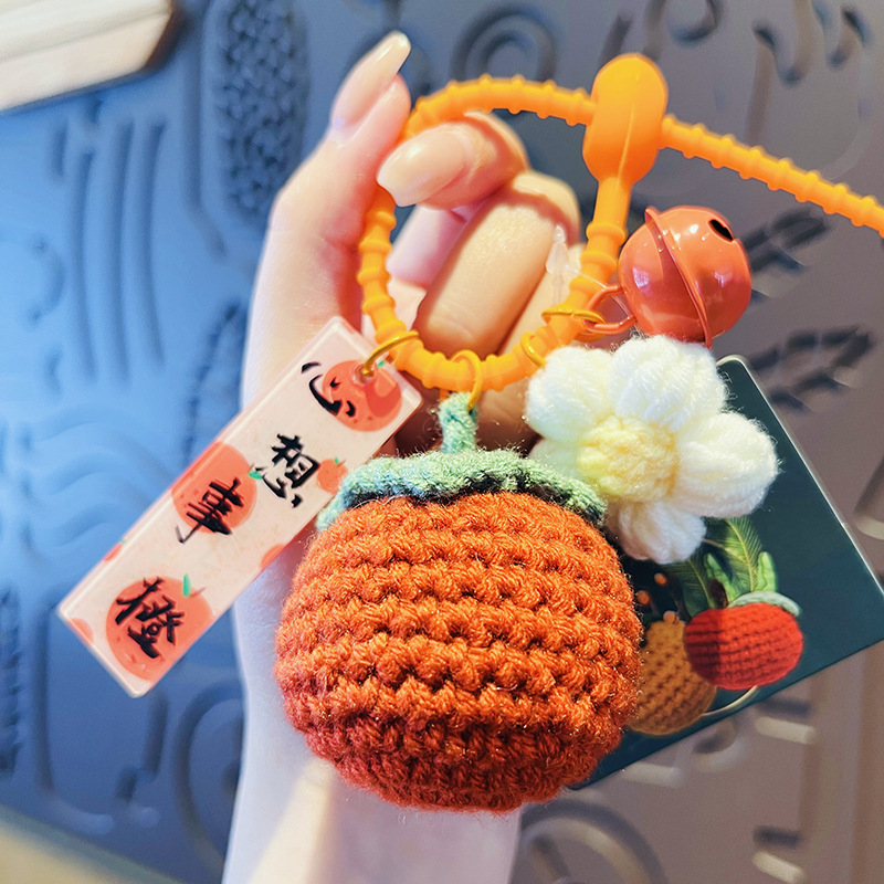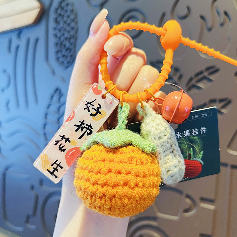 정품 원래 봉제 뜨개질 과일 펜던트 좋은 감 자동차 키 체인 여성 귀여운 커플 책가방 펜던트스토어 가기