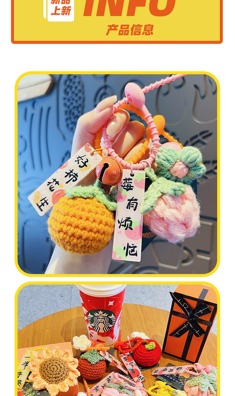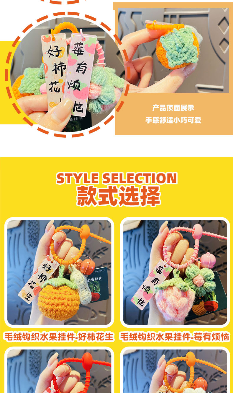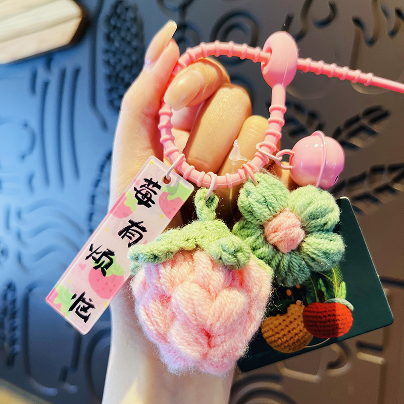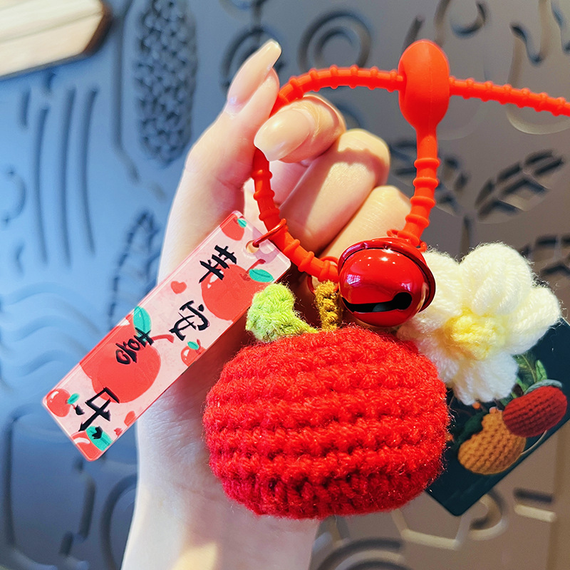 정품 원래 봉제 뜨개질 과일 펜던트 좋은 감 자동차 키 체인 여성 귀여운 커플 책가방 펜던트스토어 가기