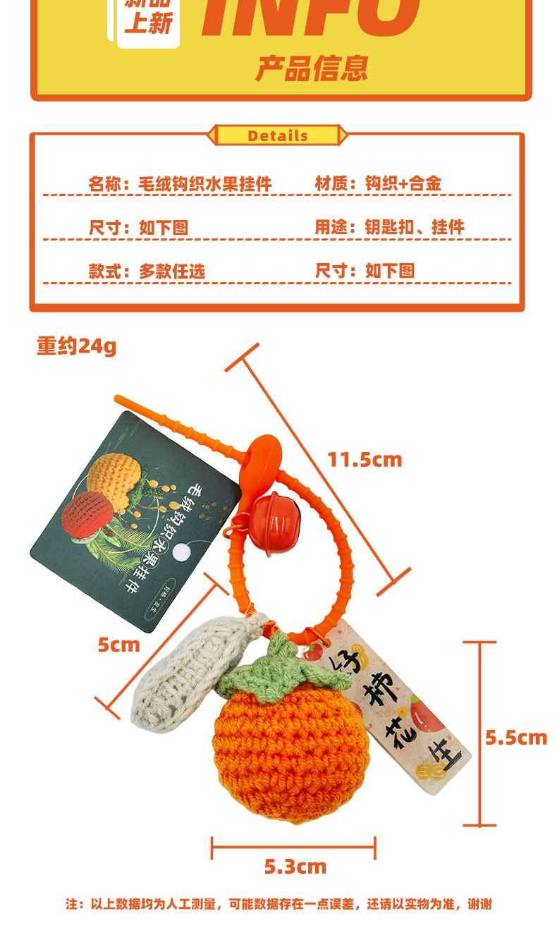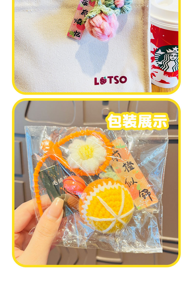 • 봉제 크로 셰 뜨개질 과일 펜던트-전면 오렌지 브로케이드
