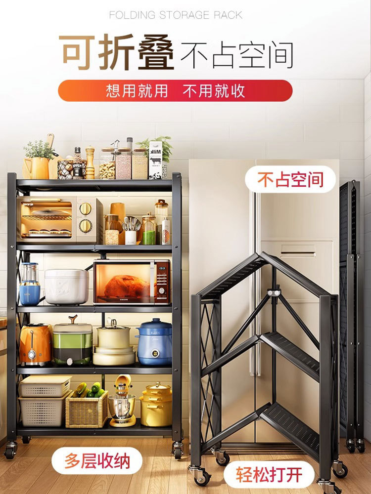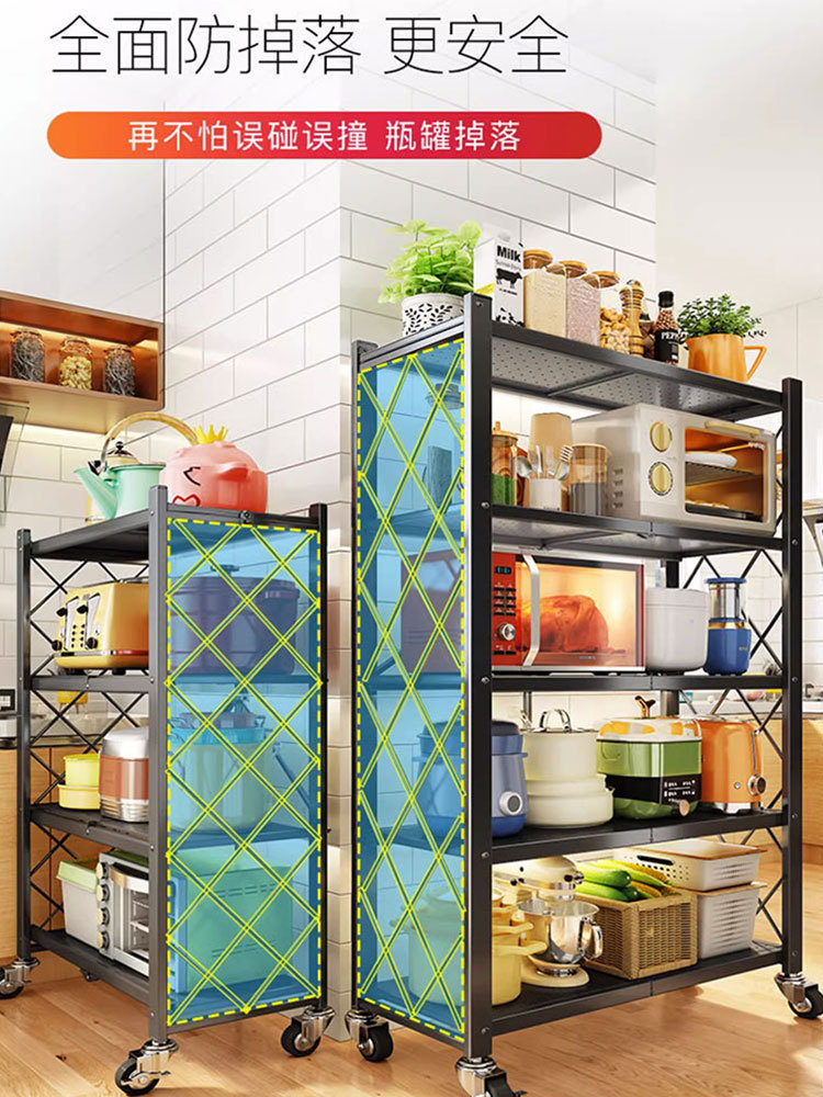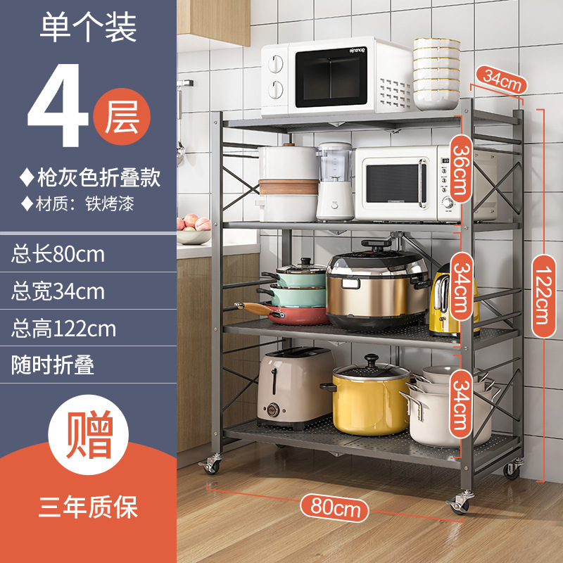 도매 설치-무료 접이식 스토리지 랙 주방 바닥 다층 스토리지 랙 냄비 랙 오븐 전자 레인지 스토리지 랙