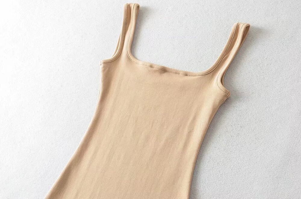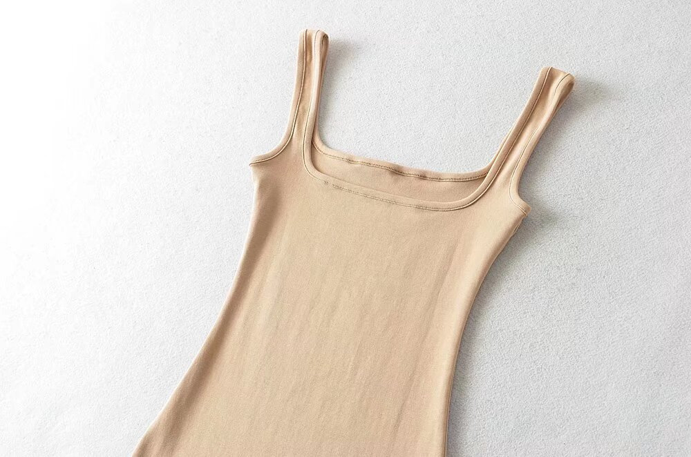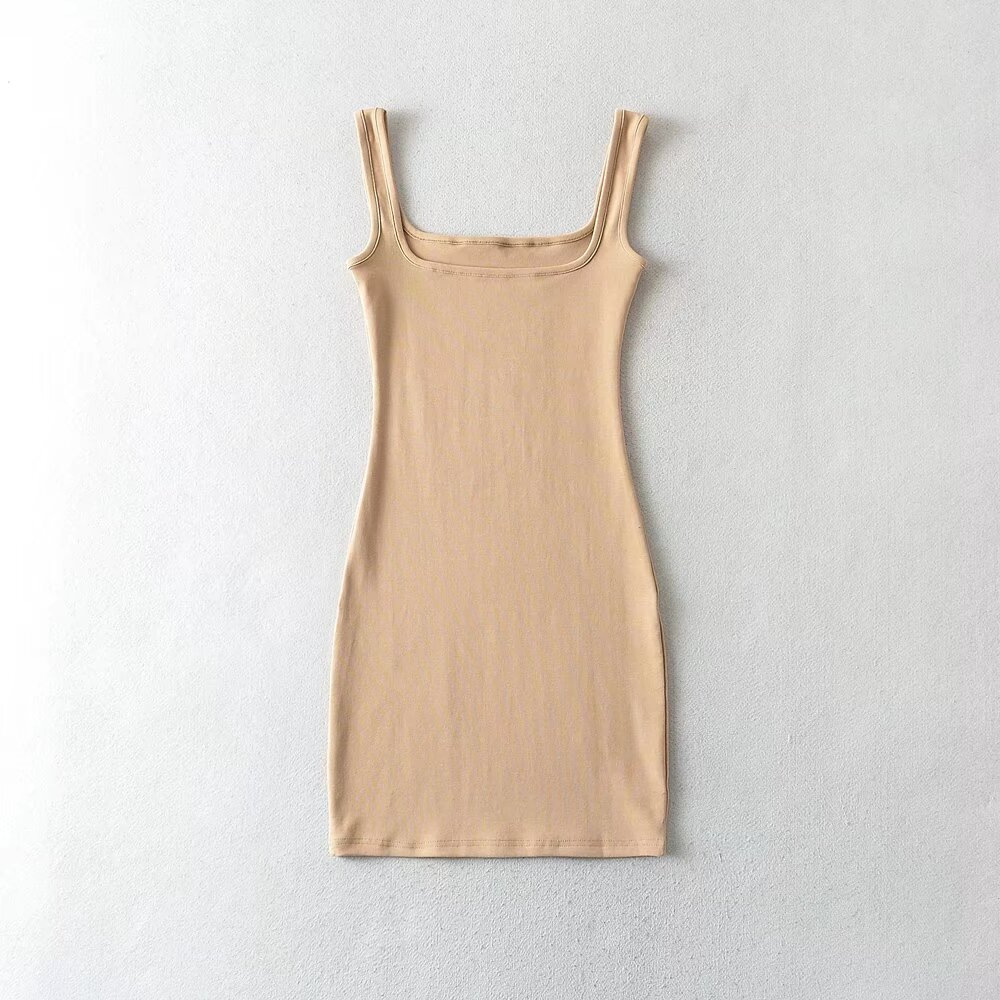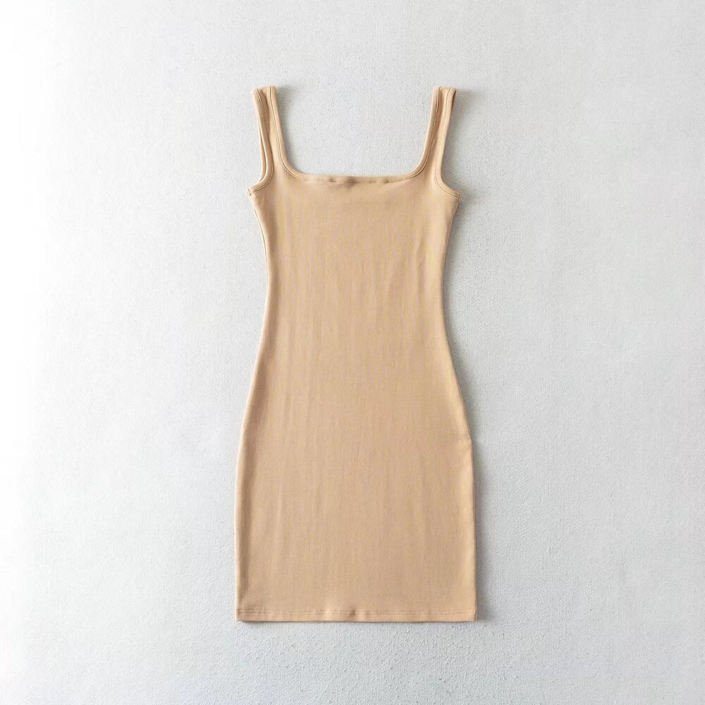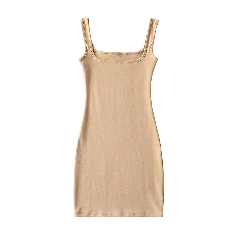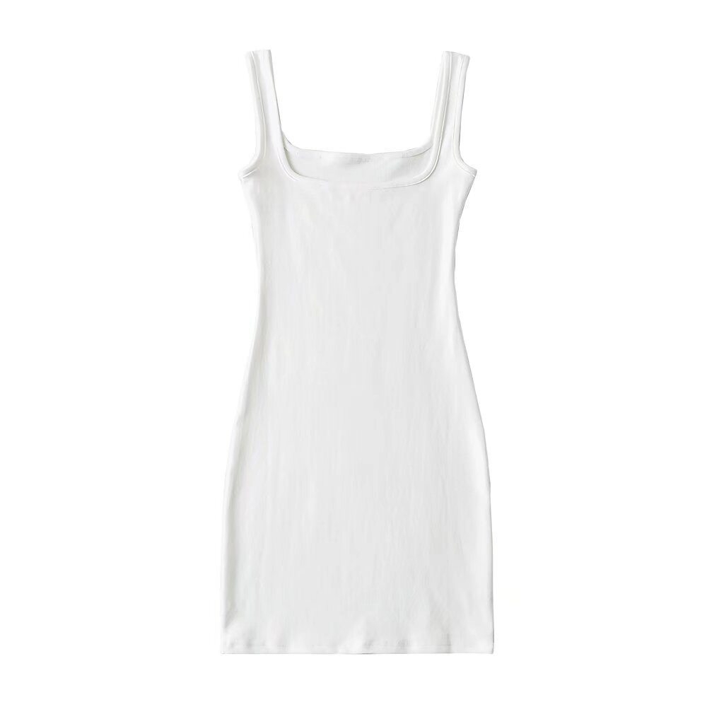 YPFF 트렌디 한 여성 스퀘어 칼라 조끼 원피스 봄 새로운 슬림 탄성 민소매 타이트 시스 스커트스토어 가기