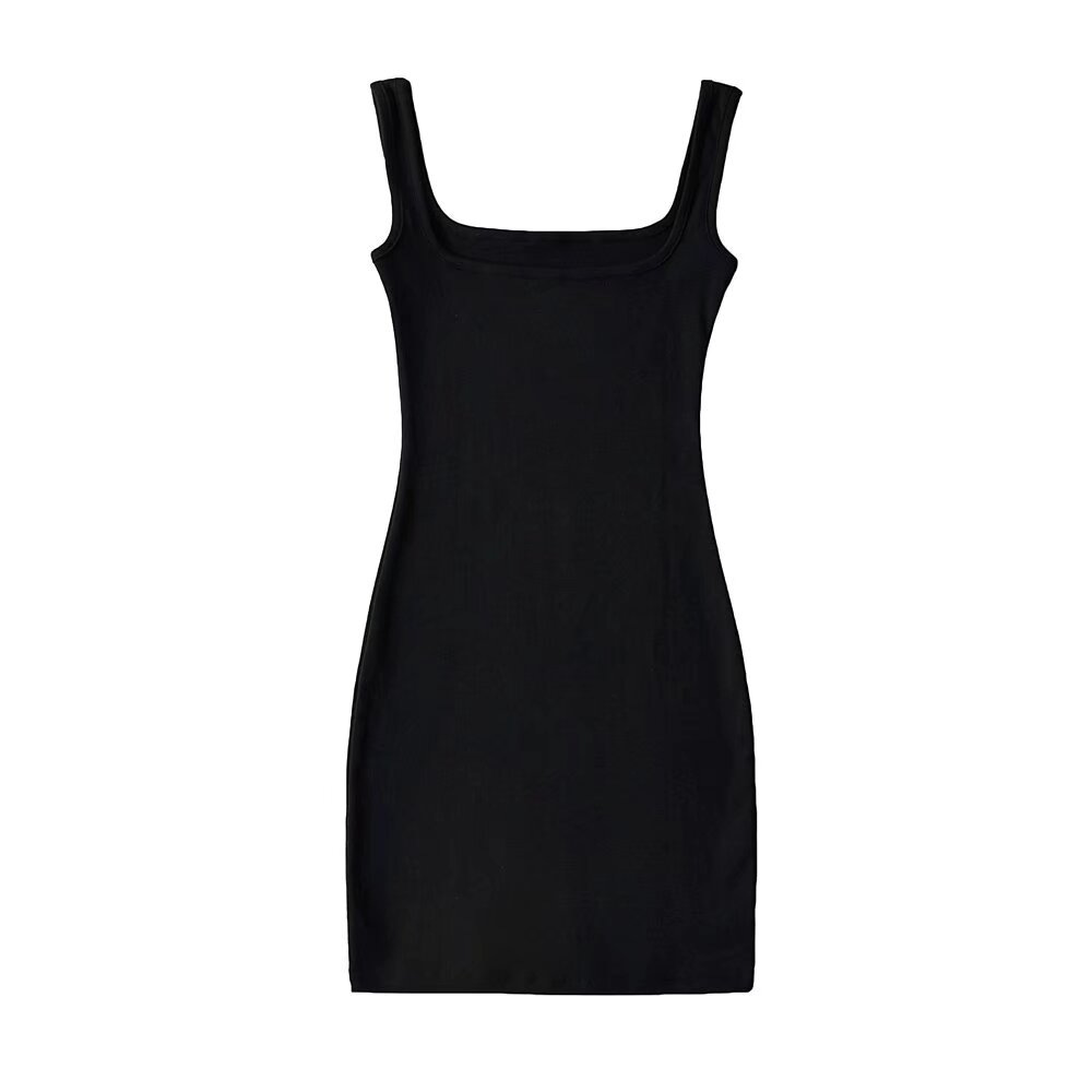 YPFF 트렌디 한 여성 스퀘어 칼라 조끼 원피스 봄 새로운 슬림 탄성 민소매 타이트 시스 스커트