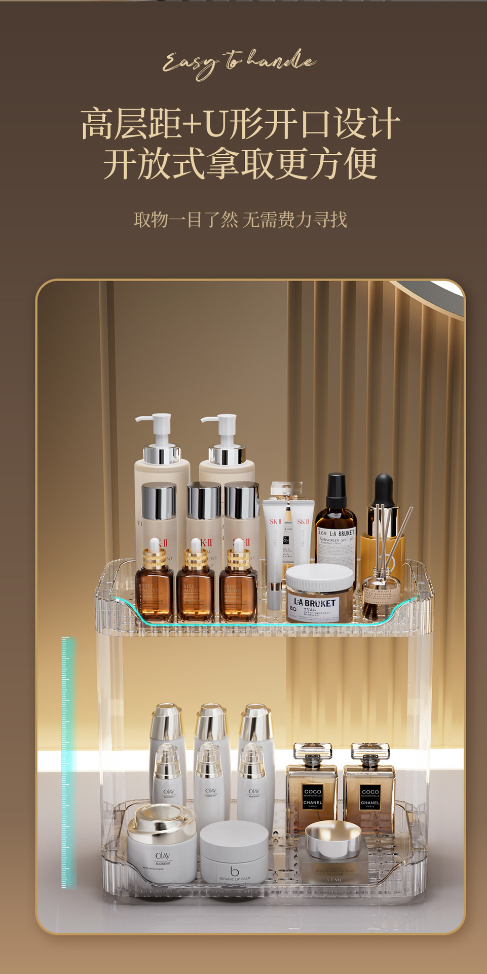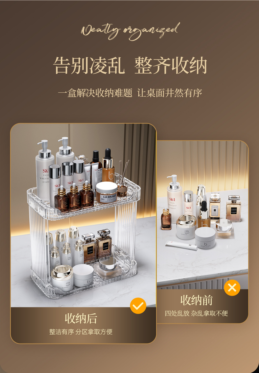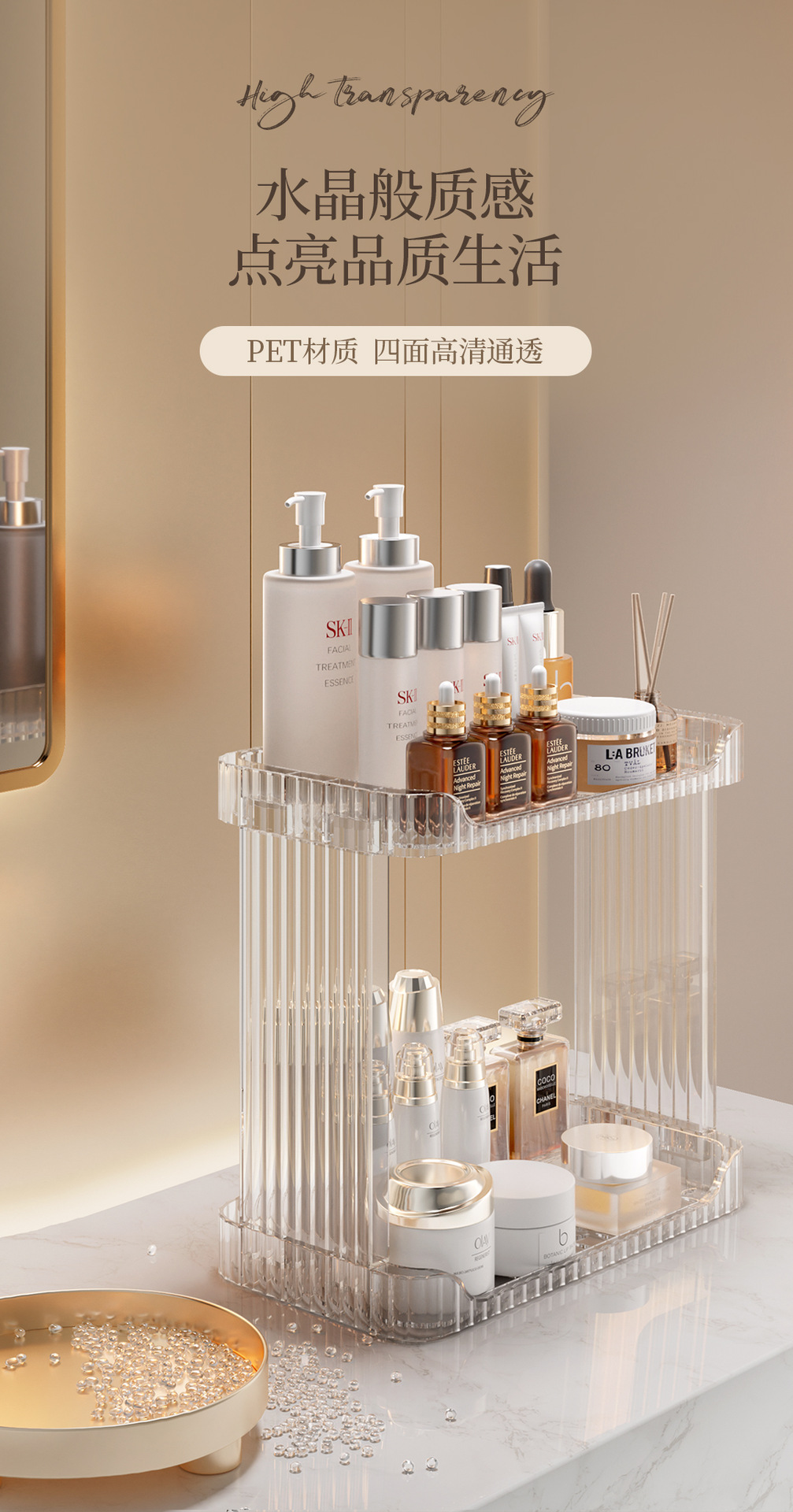 가정용 데스크탑 보관함 화장품 플라스틱 투명 보관함 욕실 싱크대 더블 레이어 보관함스토어 가기