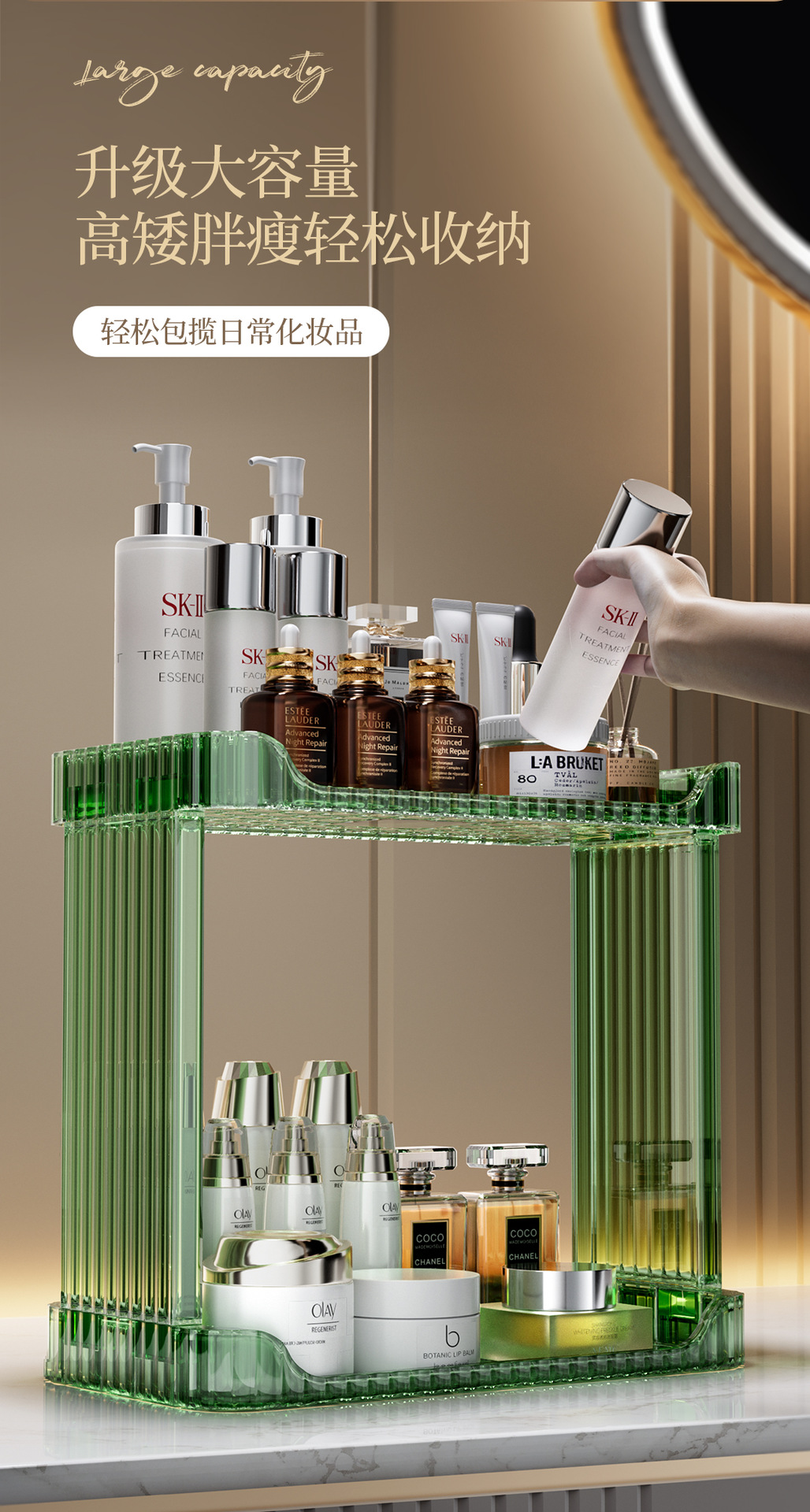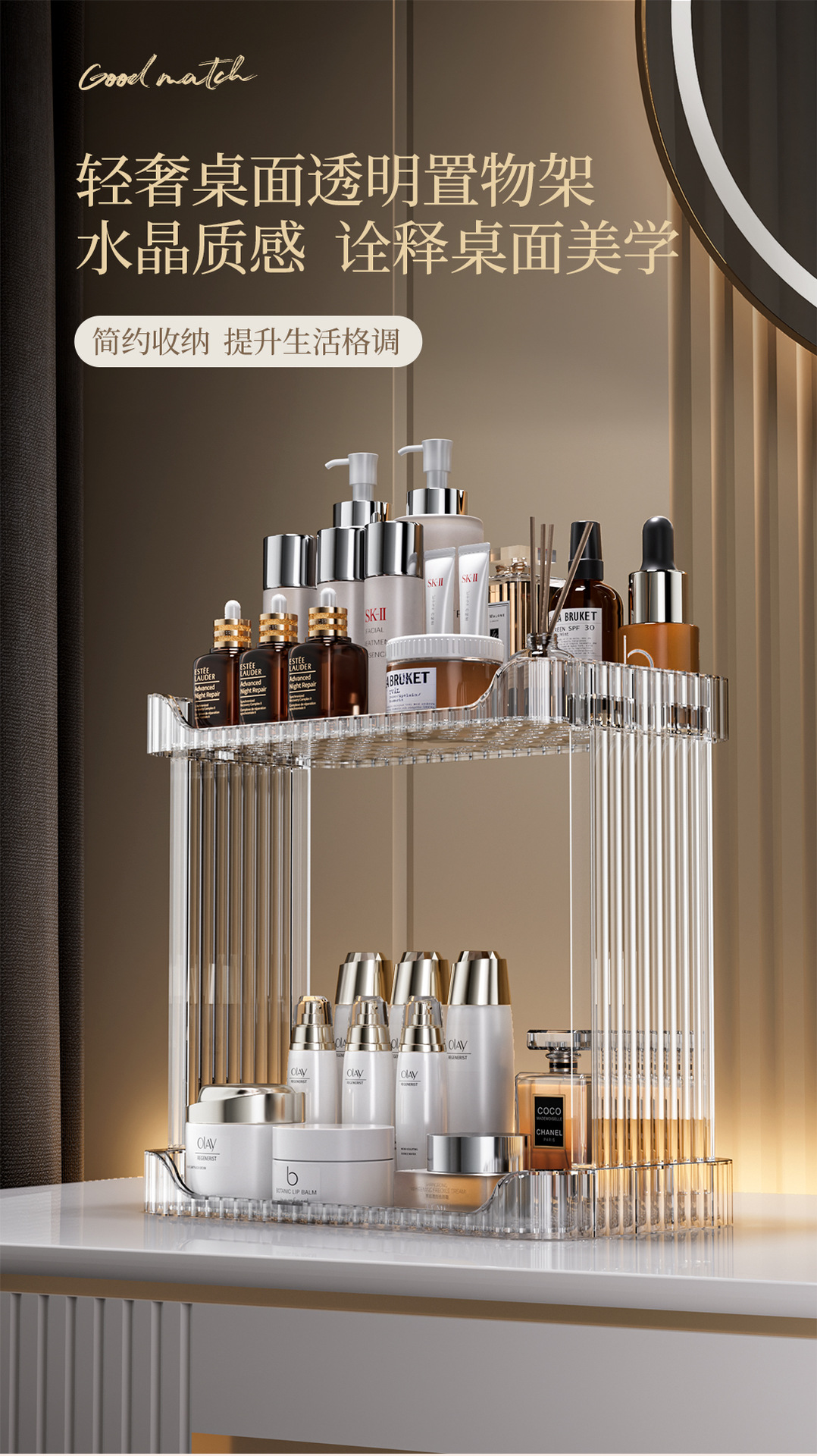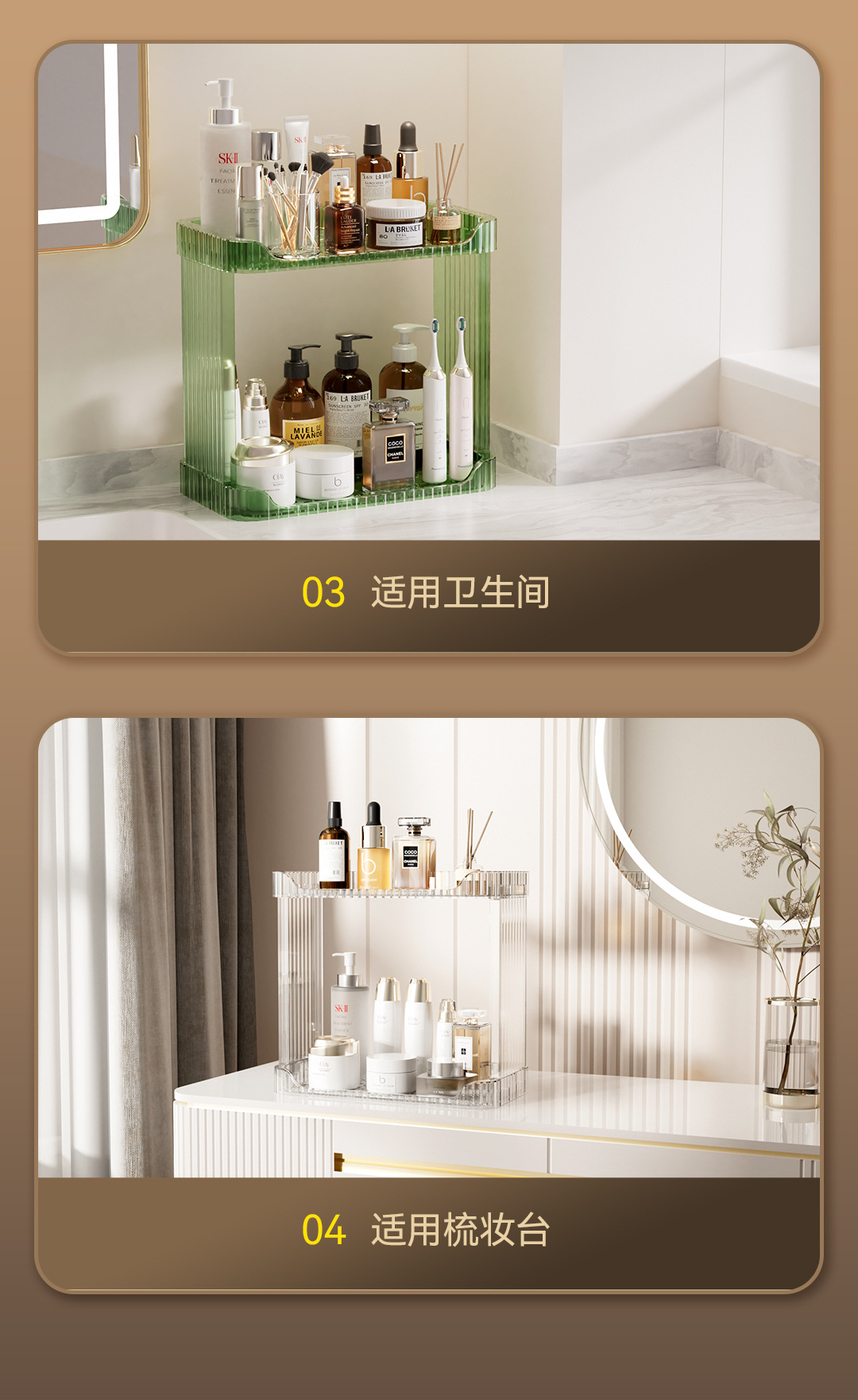 가정용 데스크탑 보관함 화장품 플라스틱 투명 보관함 욕실 싱크대 더블 레이어 보관함스토어 가기
