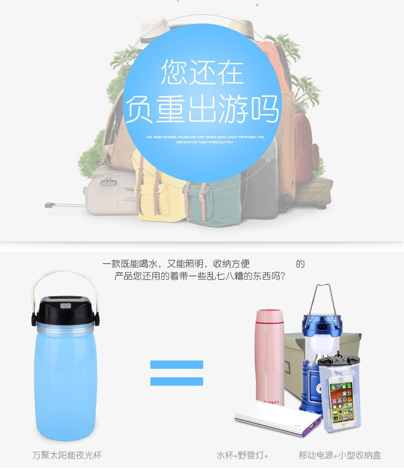 주전자 태양 물 컵 차 컵 야외 캠핑 텐트 빛나는 창조적 인 새로운 충전 다른 기둥 유형스토어 가기