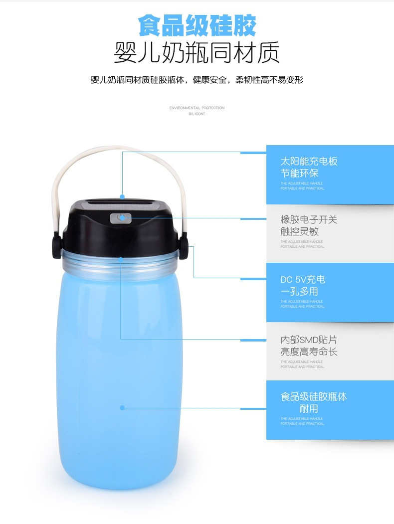 주전자 태양 물 컵 차 컵 야외 캠핑 텐트 빛나는 창조적 인 새로운 충전 다른 기둥 유형