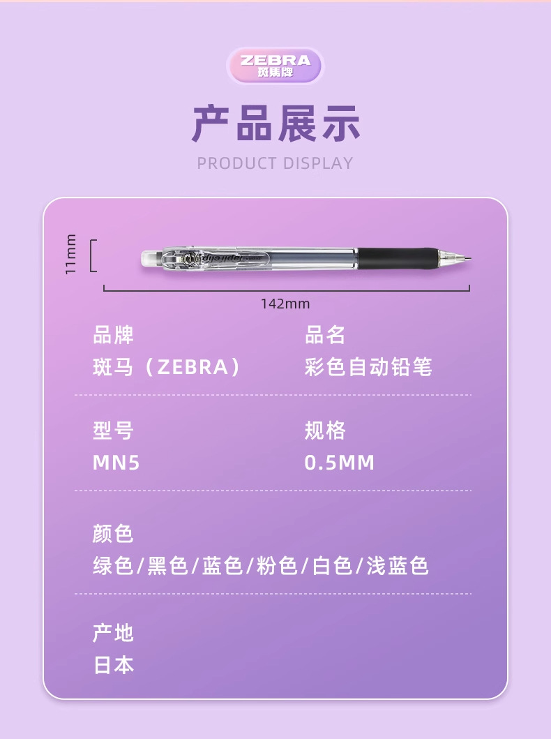 얼룩말 자동 연필 이동식 연필 MN5 접이식 펜 팁을 들고 리드 어린이 연필 초등학교 학생 문구스토어 가기