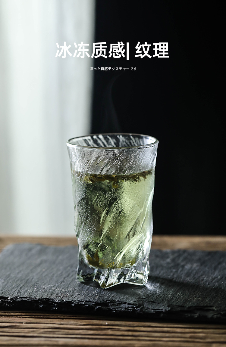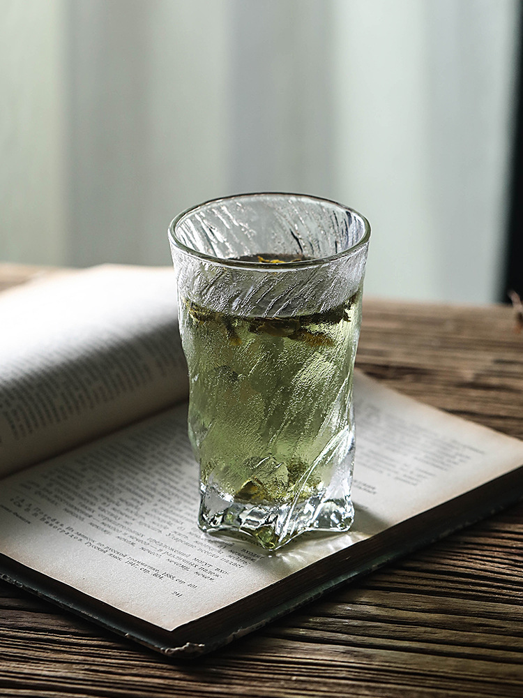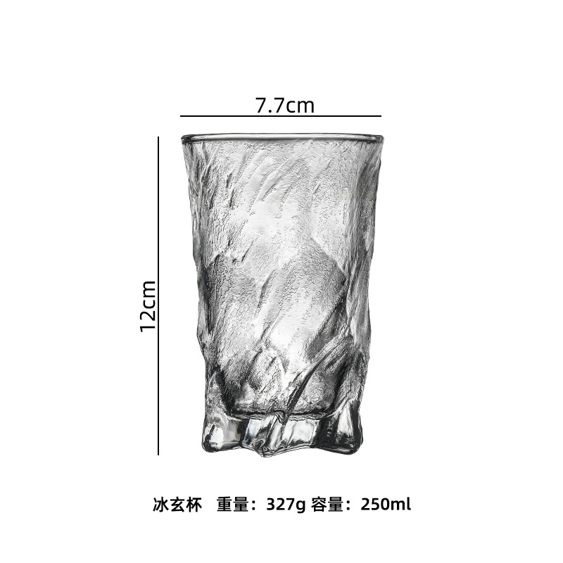 일본식 매트 하이 레벨 트위스트 컵 두꺼운 유리 빙하 패턴 물 컵 위스키 컵 아이스 하키 컵