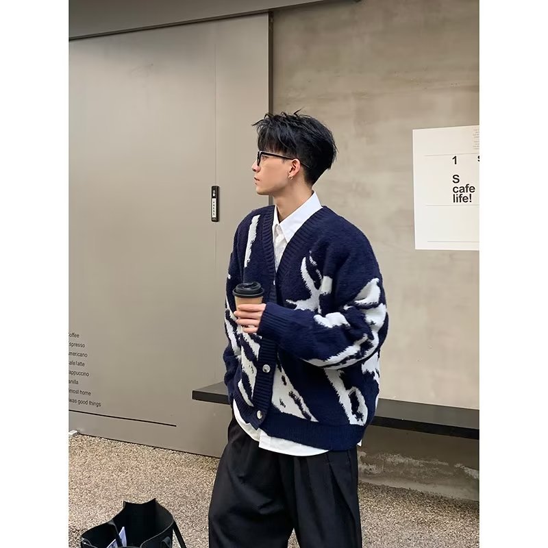 미국 복고풍 몰려 오는 V 넥 카디건 스웨터 남성과 여성 패션 브랜드 느슨한 게으른 스타일 남성 올 매치 인 간단한 스웨터스토어 가기