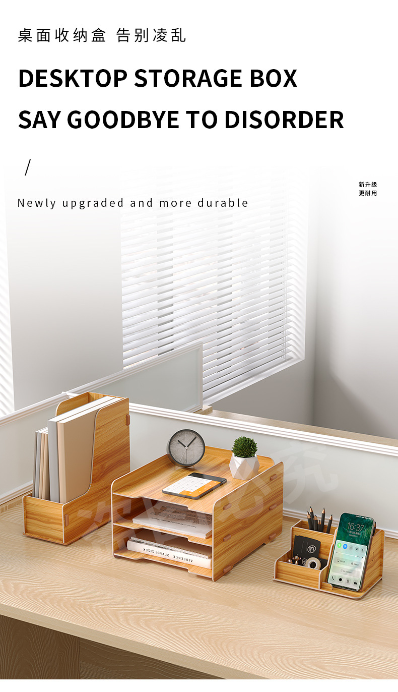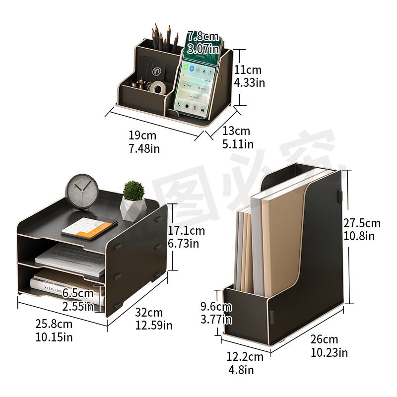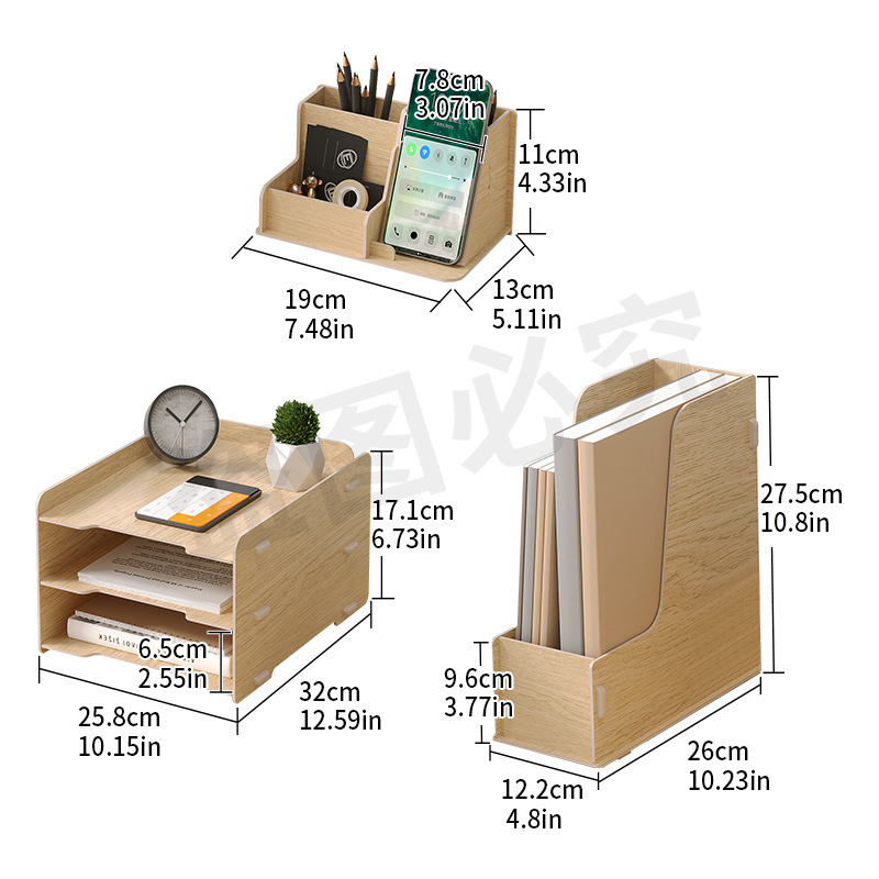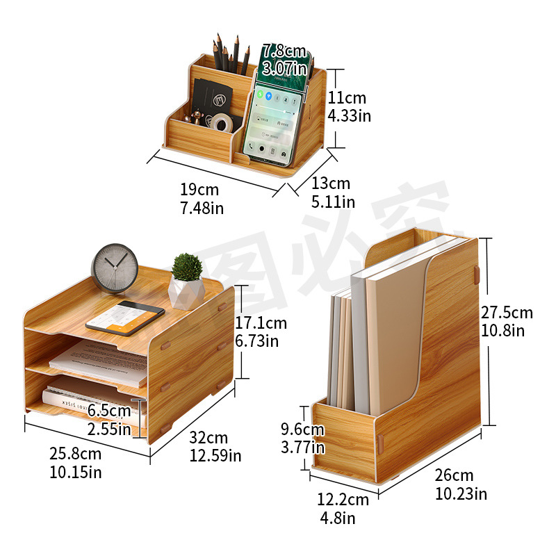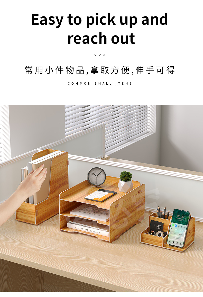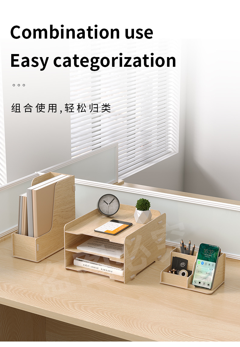 창조적 인 사무실 데스크탑 파일 저장 상자 나무 조합 세트 재료 파일 저장 랙 학생 문구 펜 홀더
