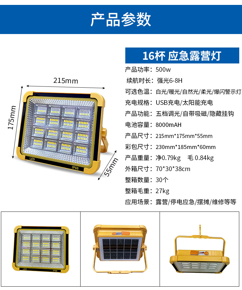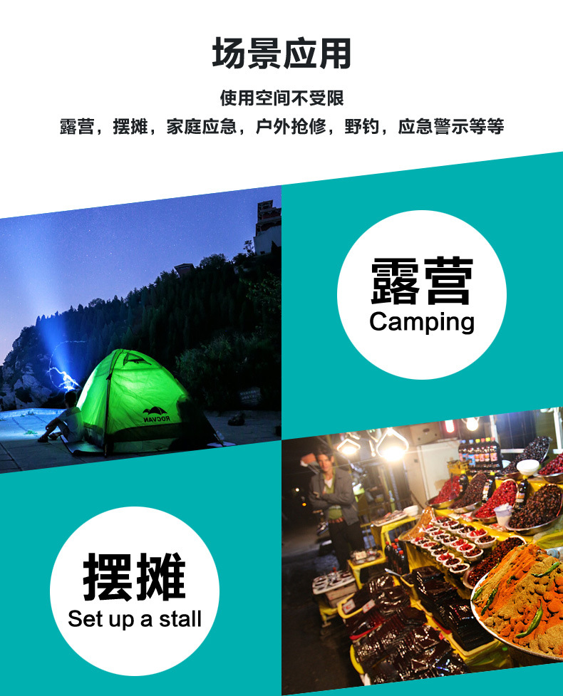 캠핑 라이트 슈퍼 긴 내구성 휴대용 후크 자석 흡착 태양 충전 라이트 야시장 실속 야외 캠핑 조명스토어 가기
