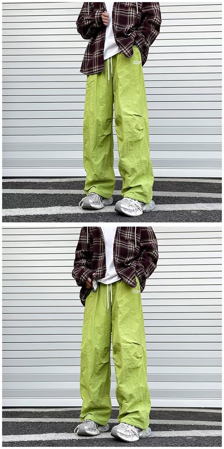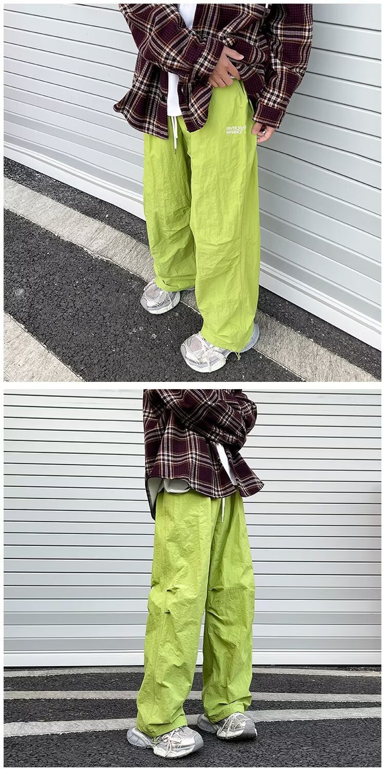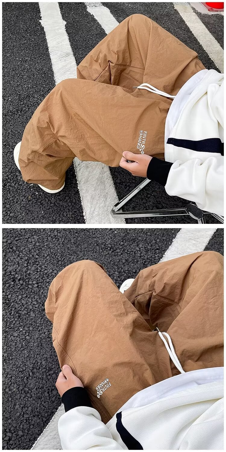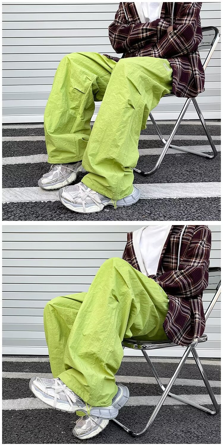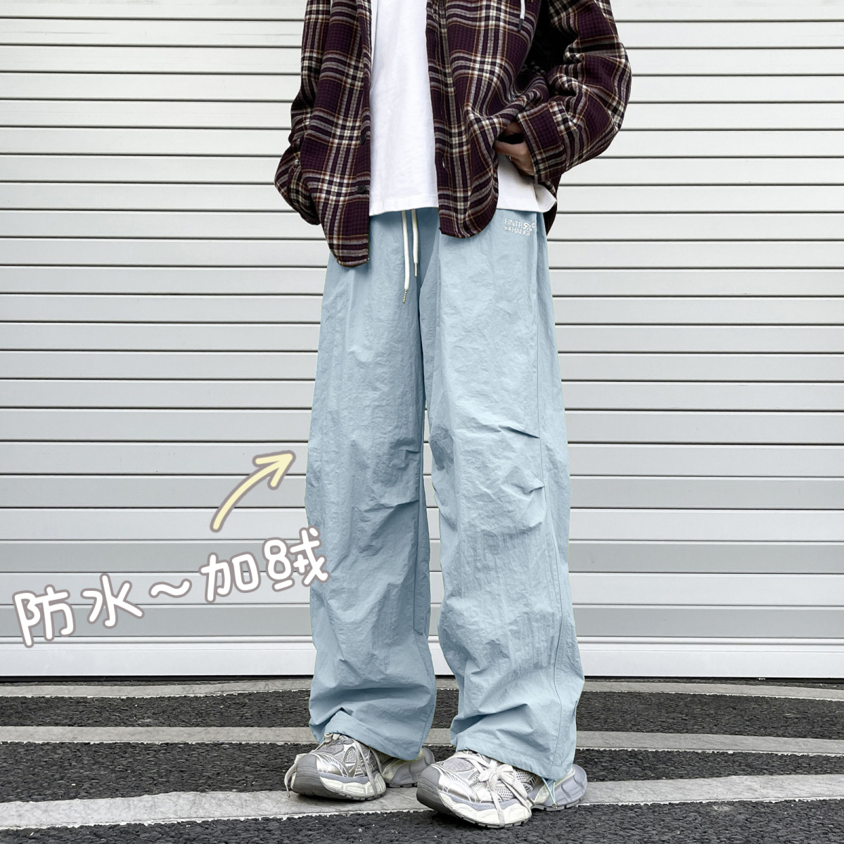 캐주얼 바지 남자의 봄과 여름 새로운 방수 느슨한 충전 바지 남자와 여자의 홍콩 스타일 유행 브랜드 패션 드로우 스트링 낙하산 바지