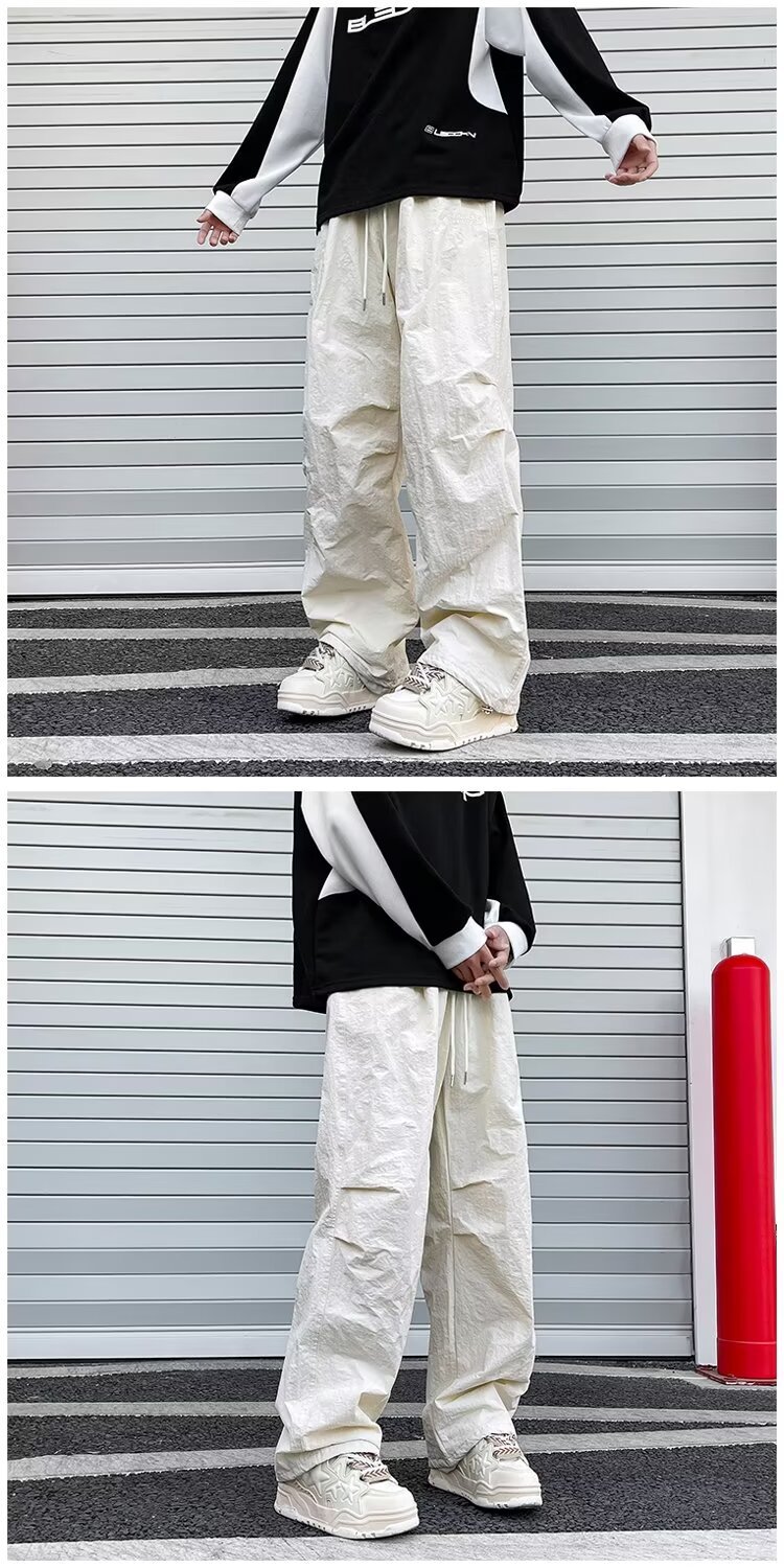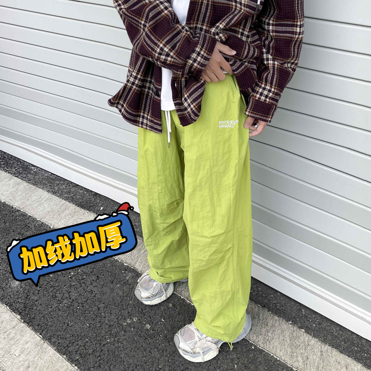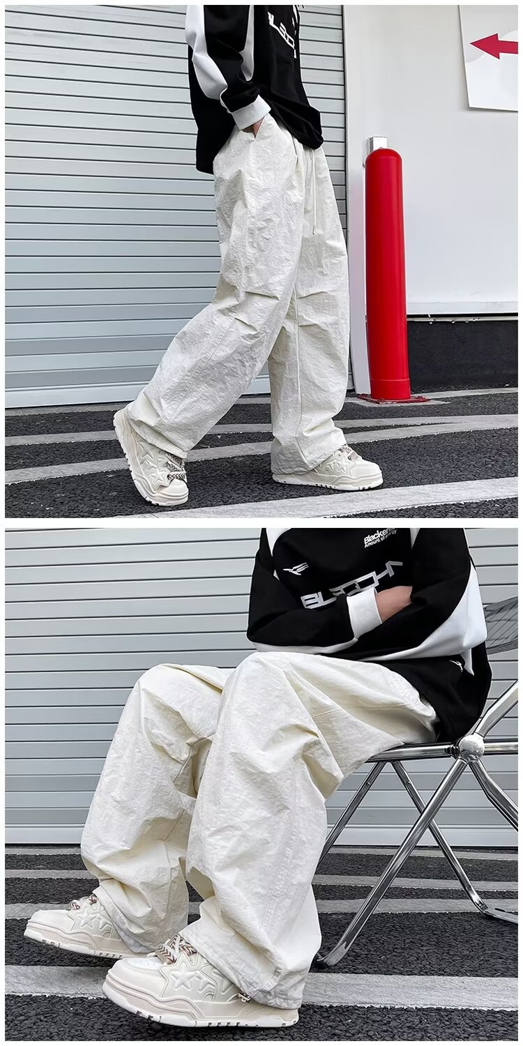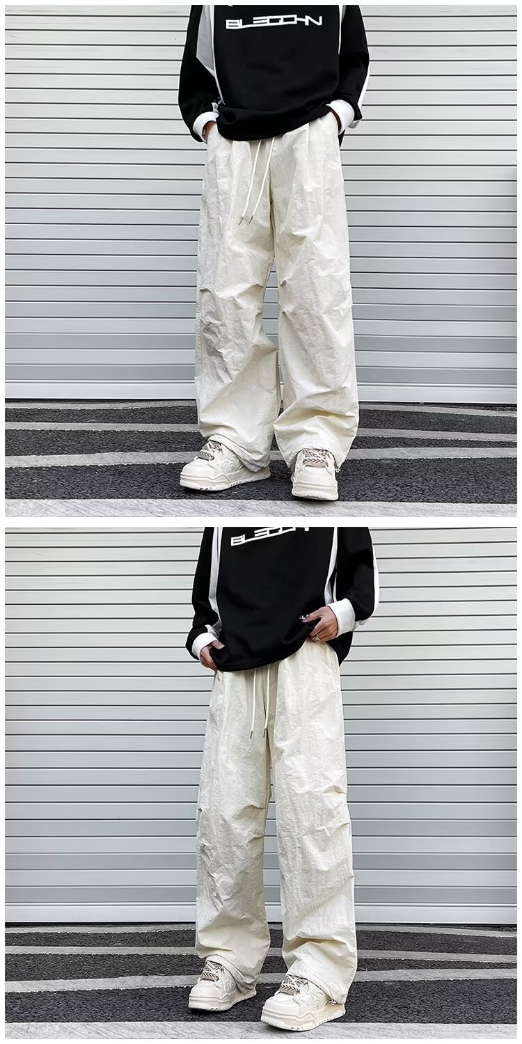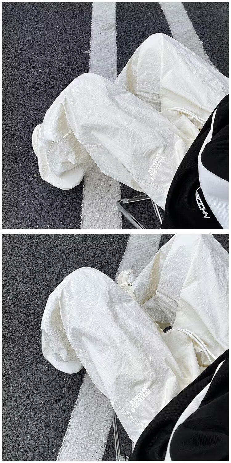 캐주얼 바지 남자의 봄과 여름 새로운 방수 느슨한 충전 바지 남자와 여자의 홍콩 스타일 유행 브랜드 패션 드로우 스트링 낙하산 바지