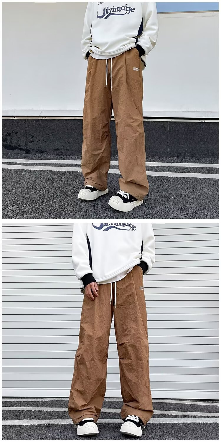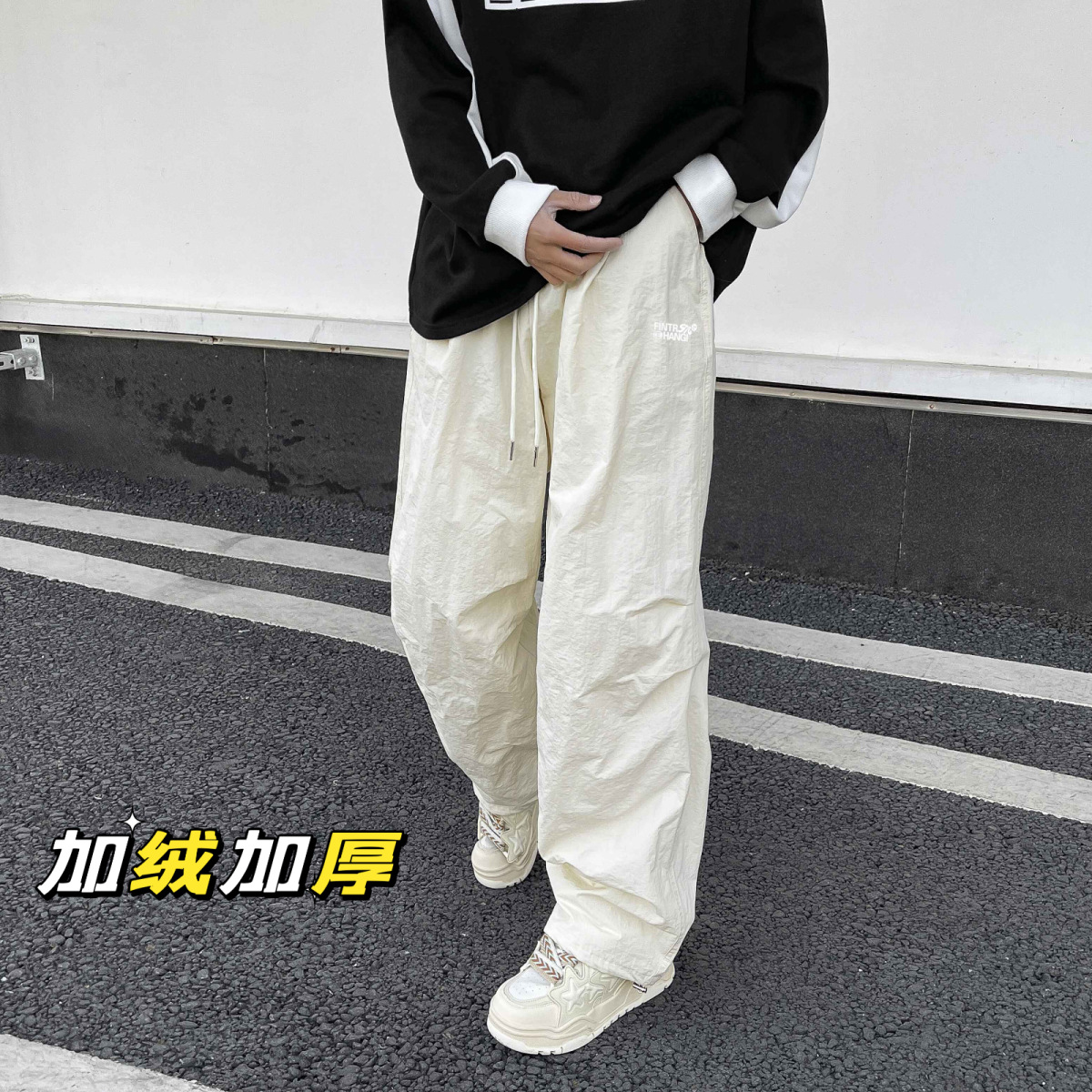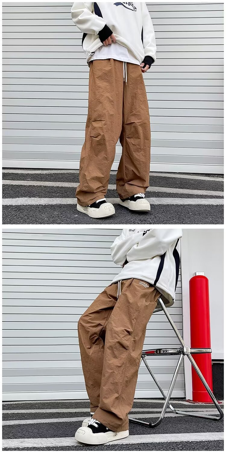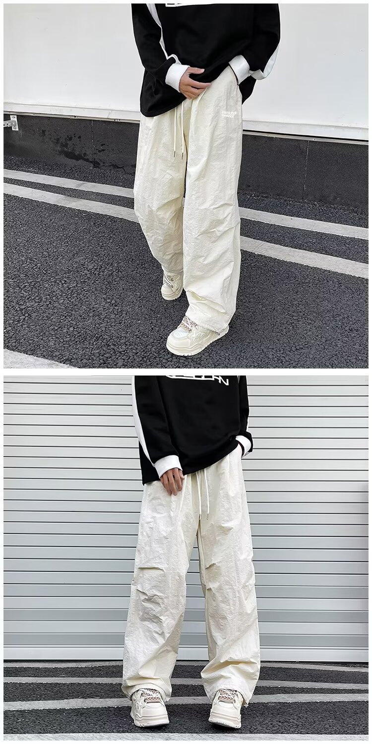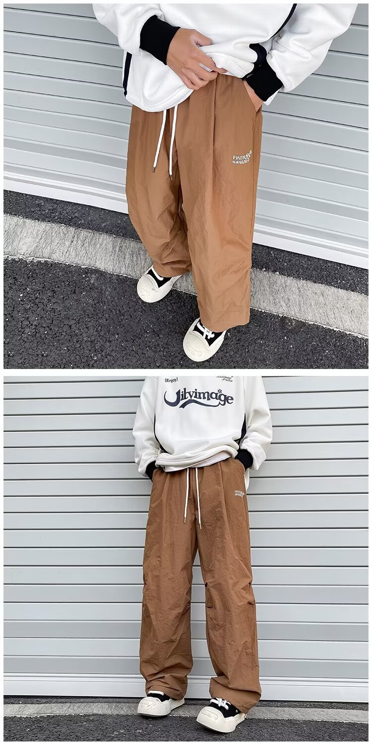 캐주얼 바지 남자의 봄과 여름 새로운 방수 느슨한 충전 바지 남자와 여자의 홍콩 스타일 유행 브랜드 패션 드로우 스트링 낙하산 바지