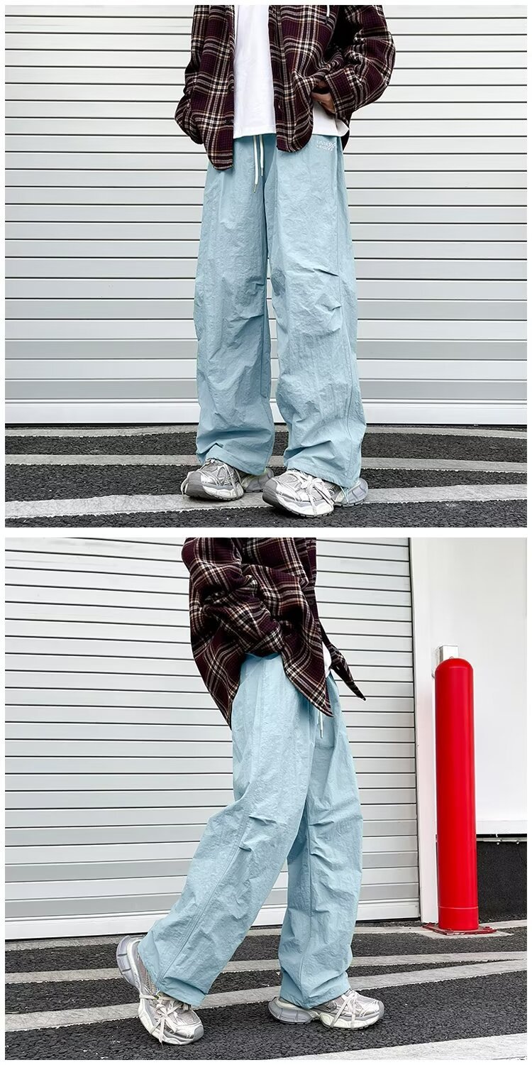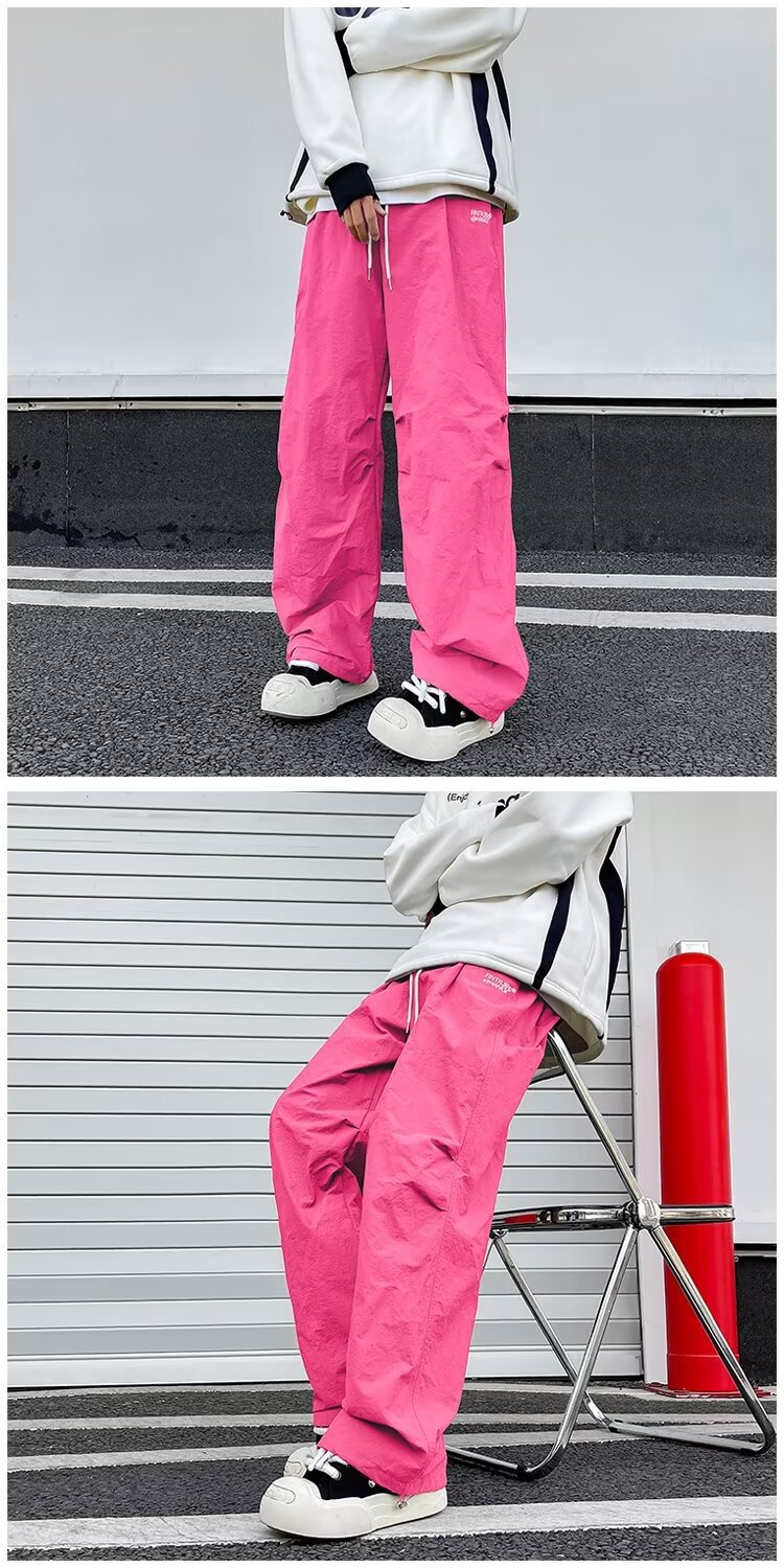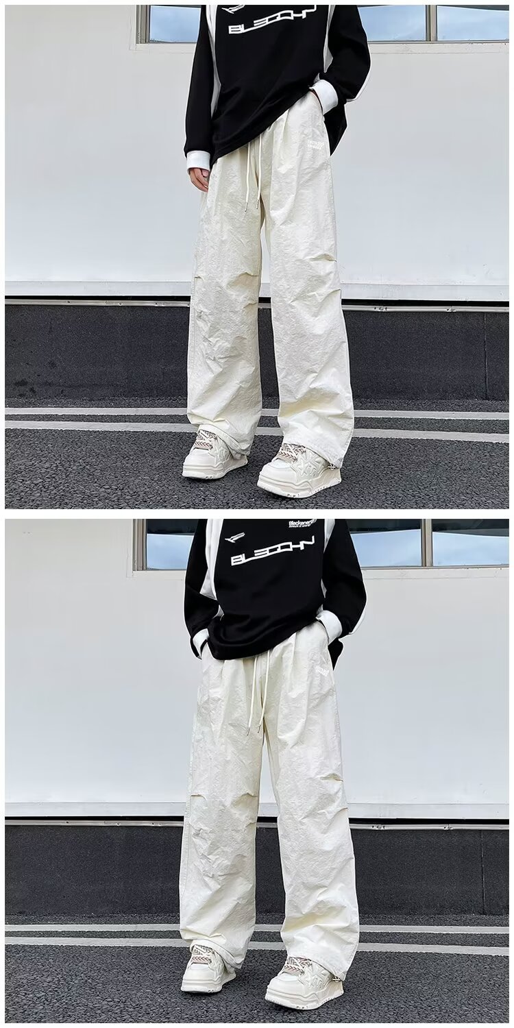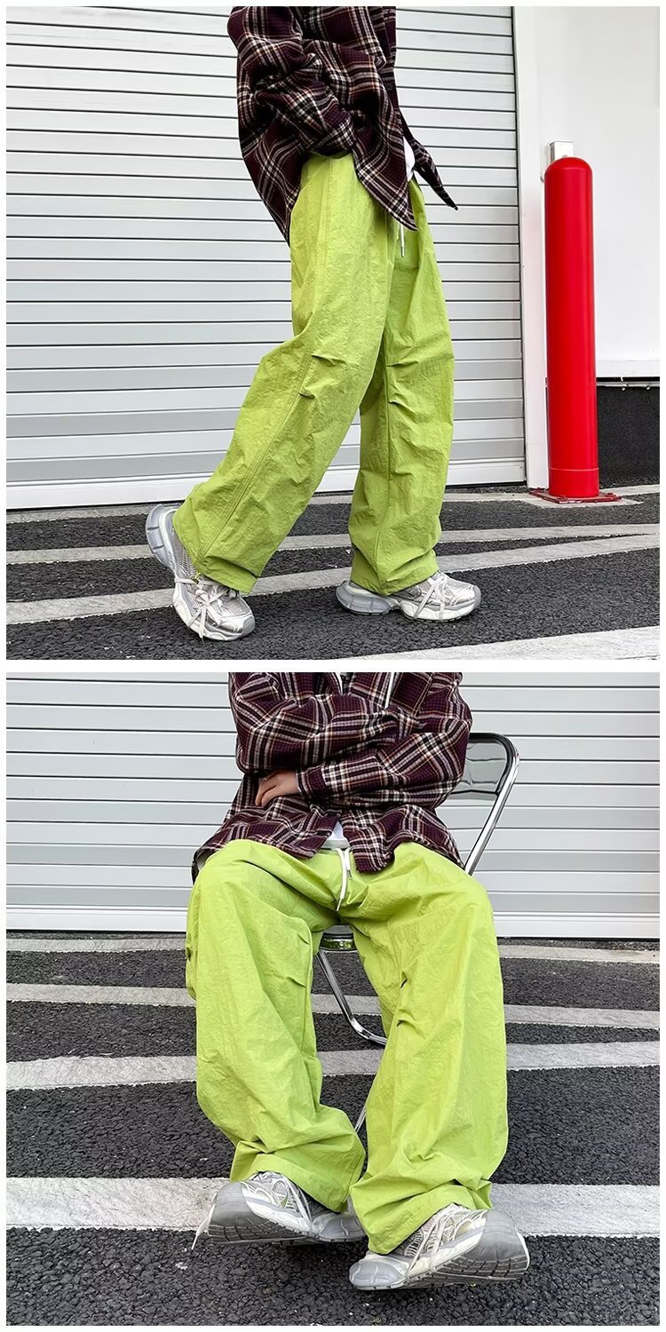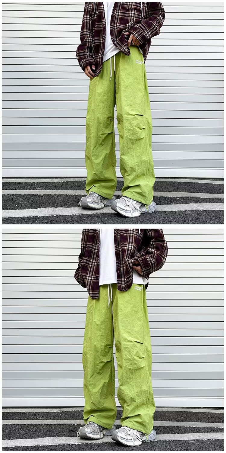 캐주얼 바지 남자의 봄과 여름 새로운 방수 느슨한 충전 바지 남자와 여자의 홍콩 스타일 유행 브랜드 패션 드로우 스트링 낙하산 바지