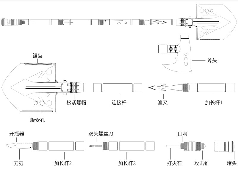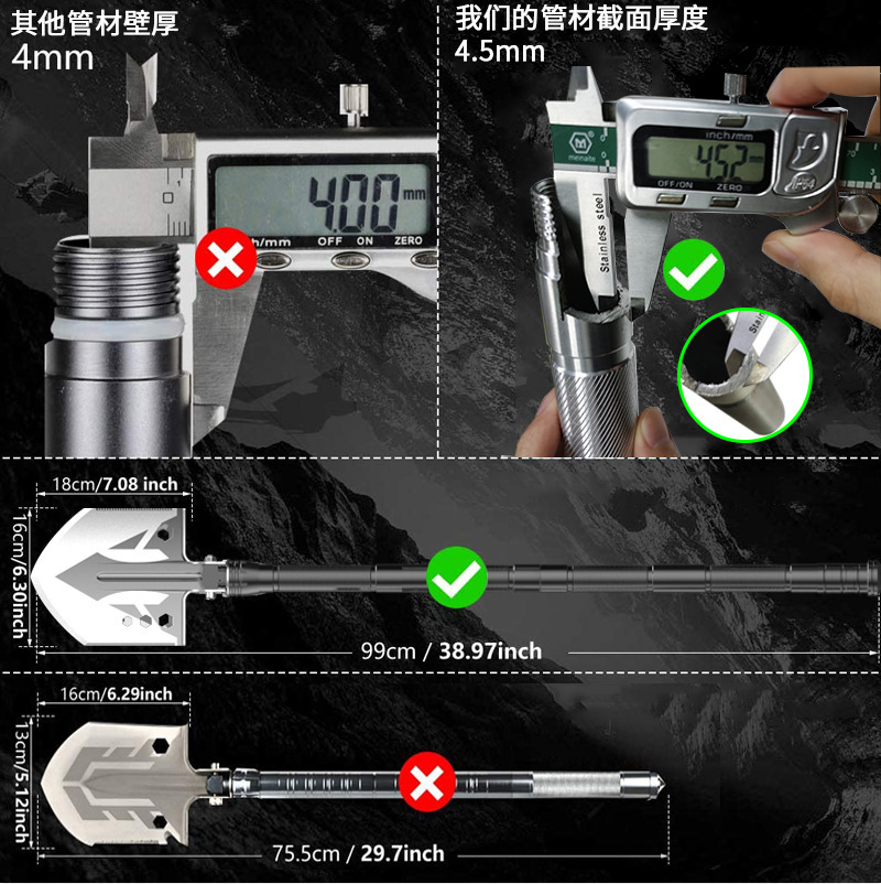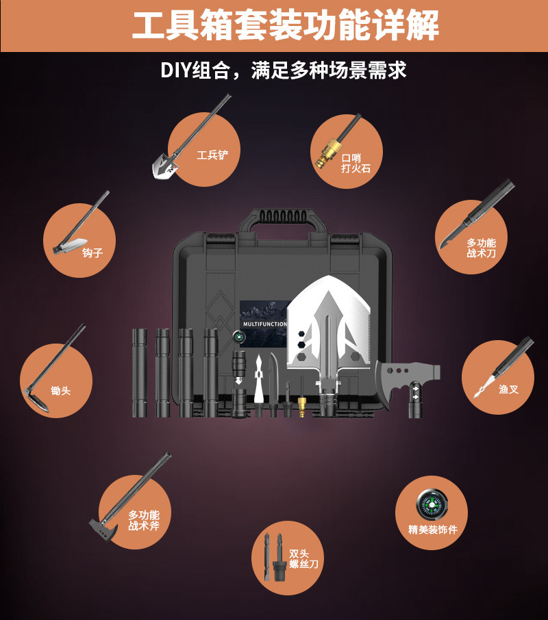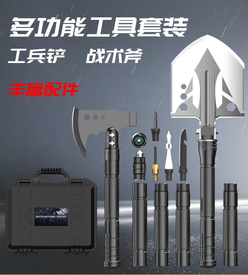 엔지니어링 삽 자동차 조합 세트 접이식 도끼 캠핑 도끼 야외 휴대용 세트 다기능 엔지니어링 삽