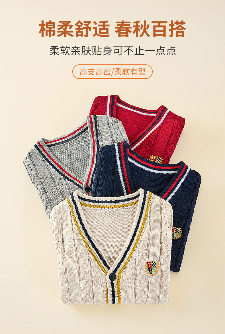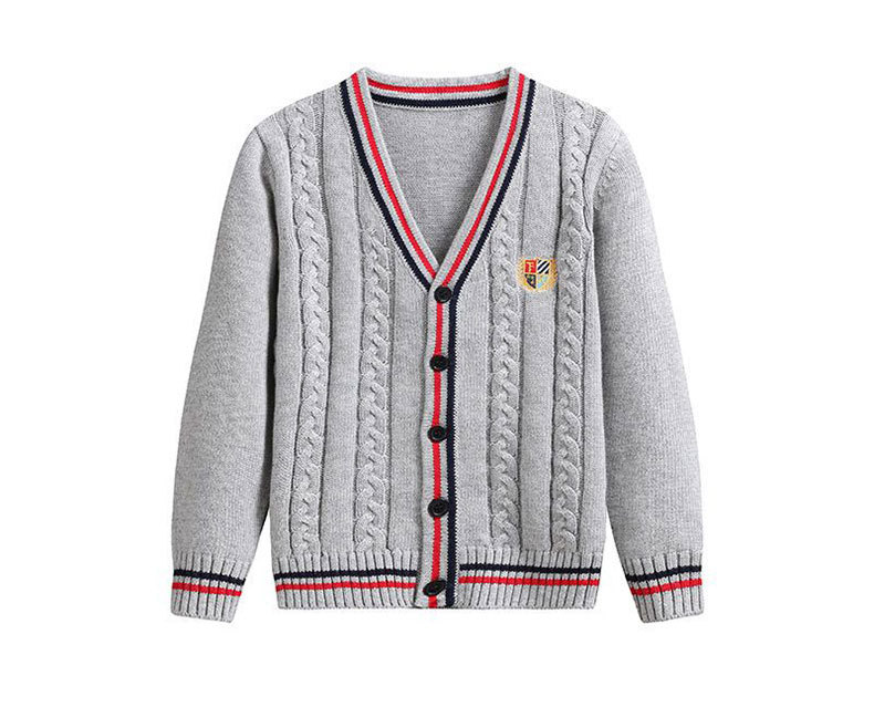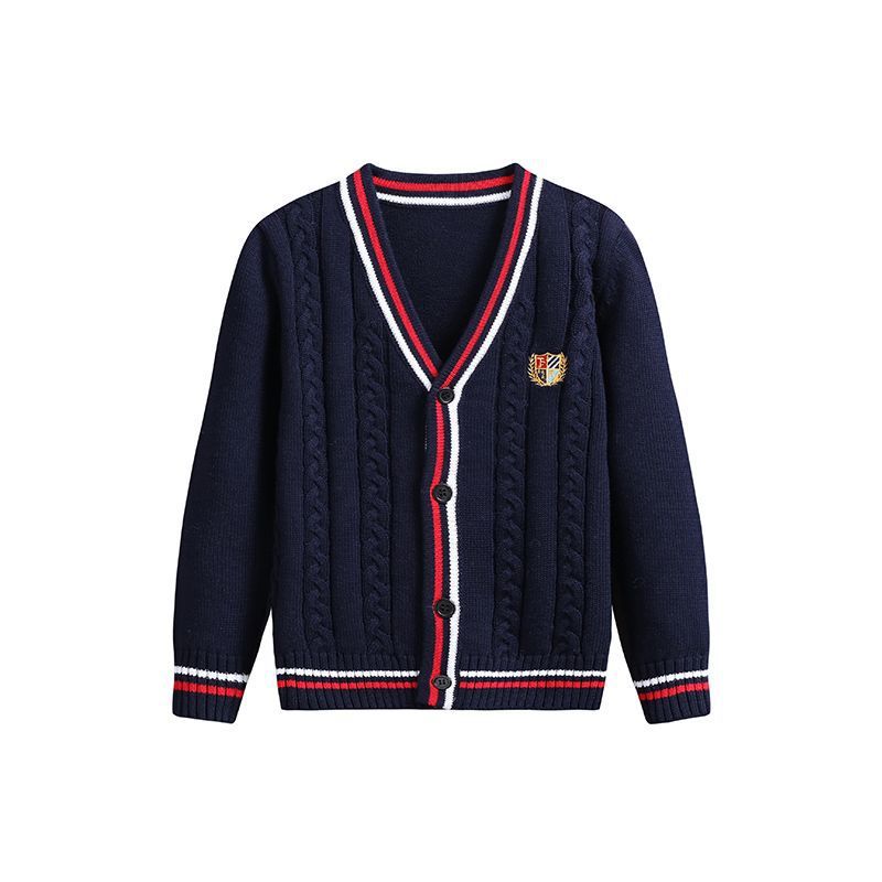 어린이 니트 카디건 얇은 스웨터 버튼 순수한 양모 면사 아기 초등학교 학생 대학 스타일 소년 봄과 가을 스타일 여성