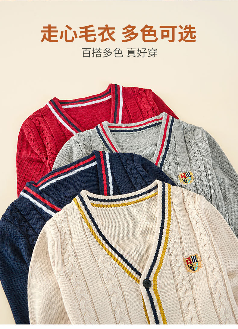 어린이 니트 카디건 얇은 스웨터 버튼 순수한 양모 면사 아기 초등학교 학생 대학 스타일 소년 봄과 가을 스타일 여성스토어 가기