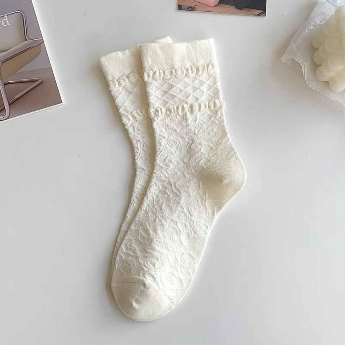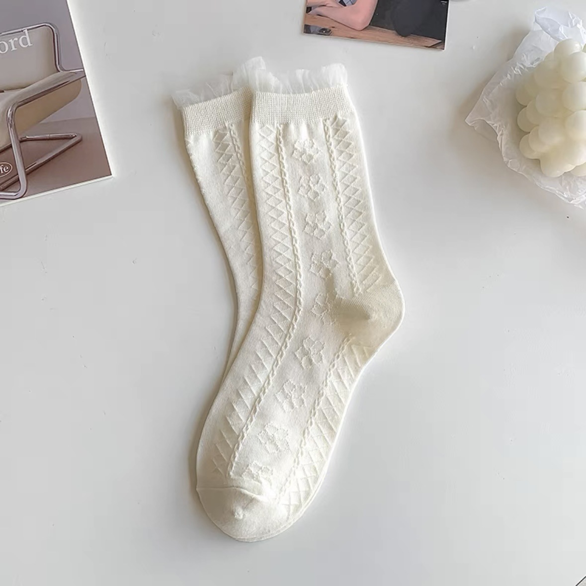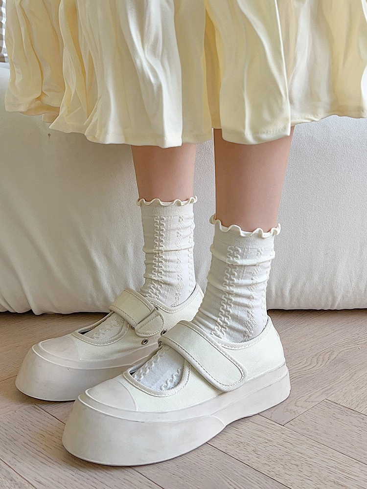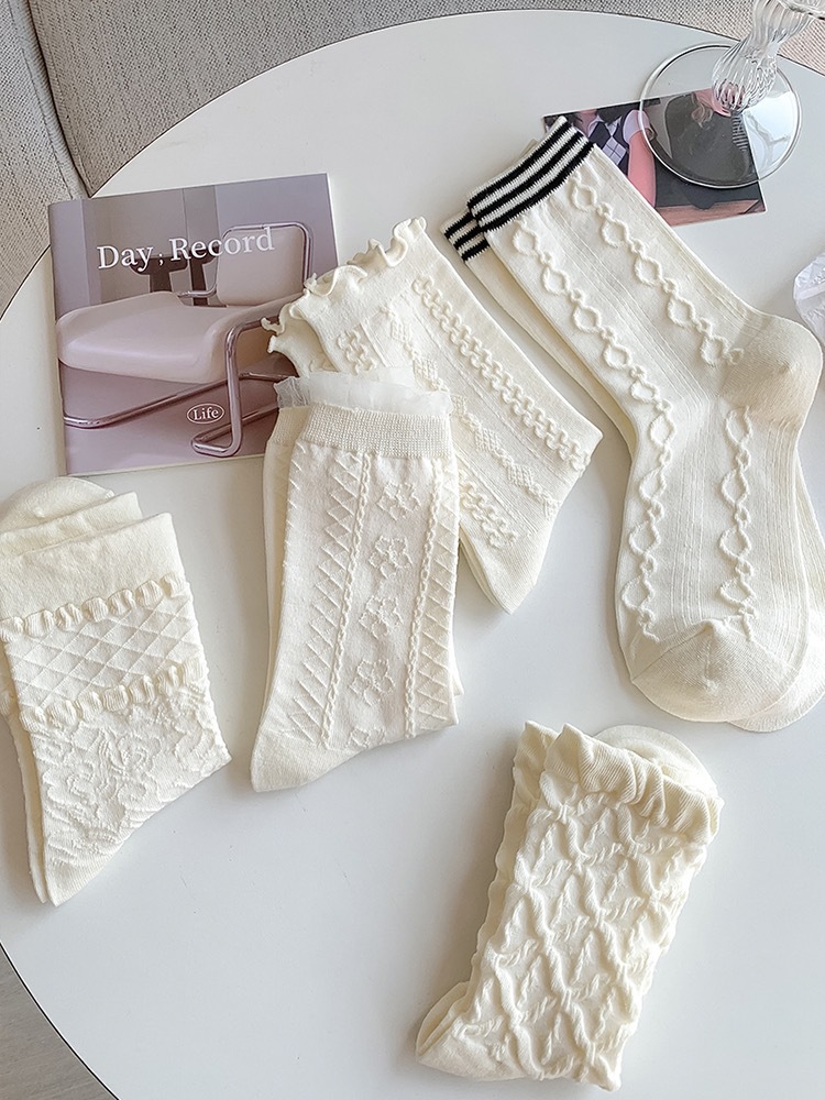 흰색 양말 여성면 중간 종아리 길이 양말 봄과 가을 겨울 스포츠 양말 귀여운 일본 레이스 JKins 대학 스타일