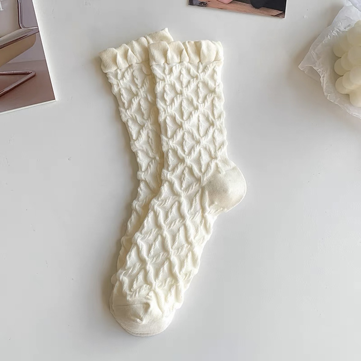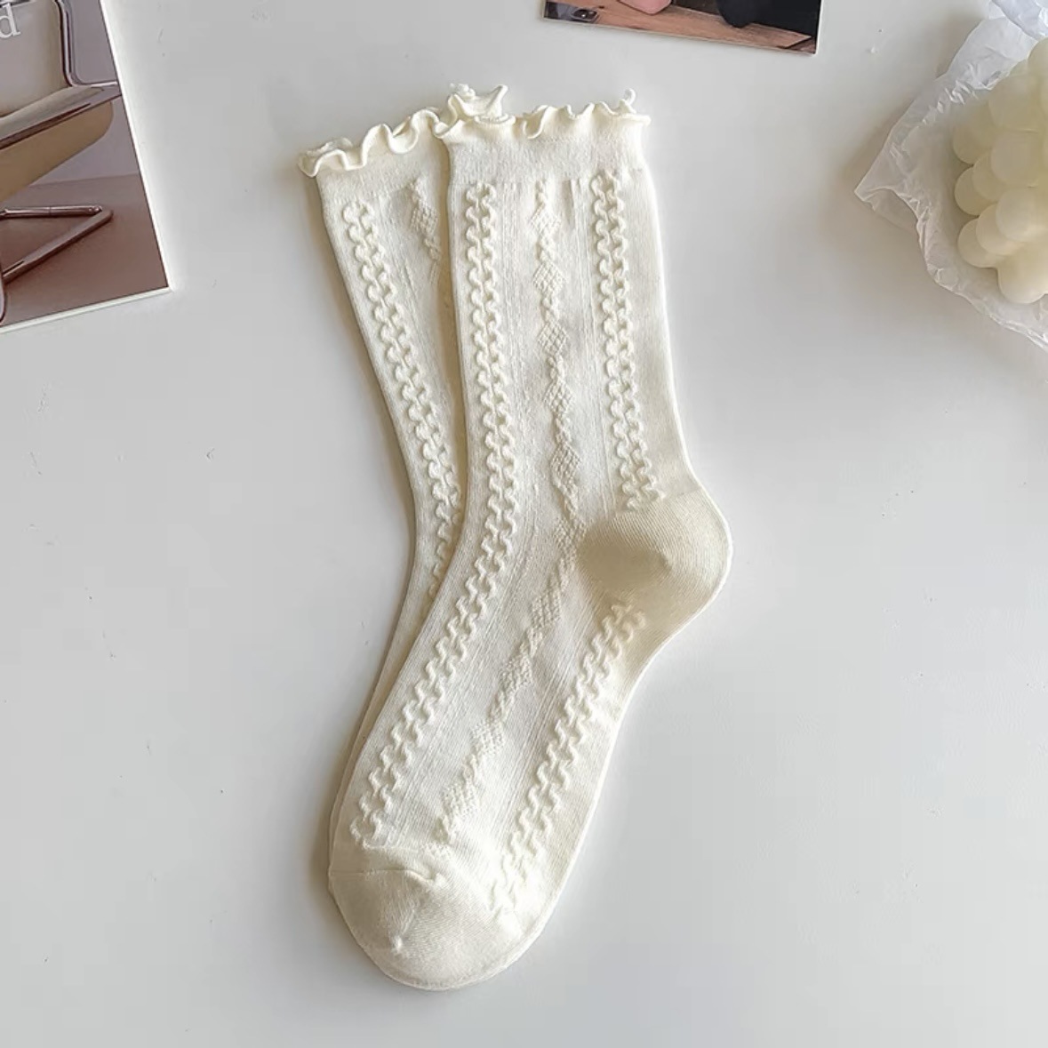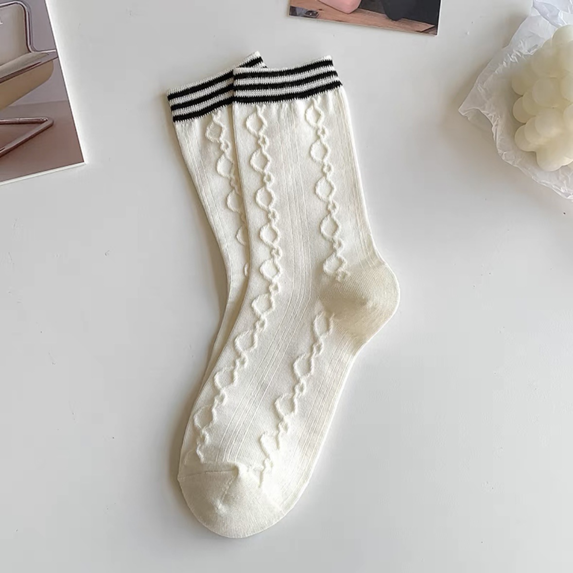 흰색 양말 여성면 중간 종아리 길이 양말 봄과 가을 겨울 스포츠 양말 귀여운 일본 레이스 JKins 대학 스타일