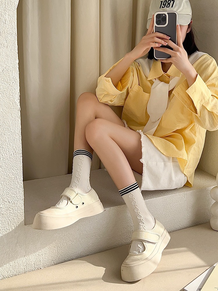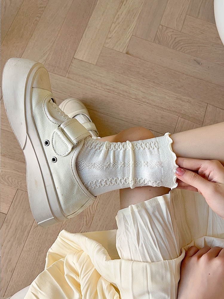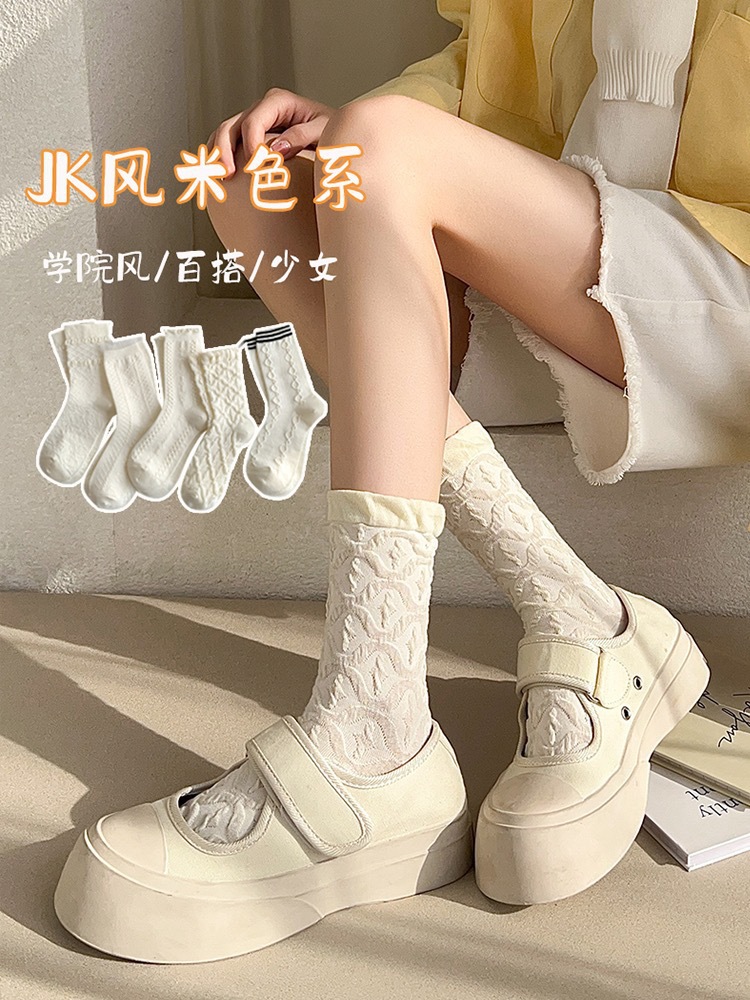 흰색 양말 여성면 중간 종아리 길이 양말 봄과 가을 겨울 스포츠 양말 귀여운 일본 레이스 JKins 대학 스타일스토어 가기