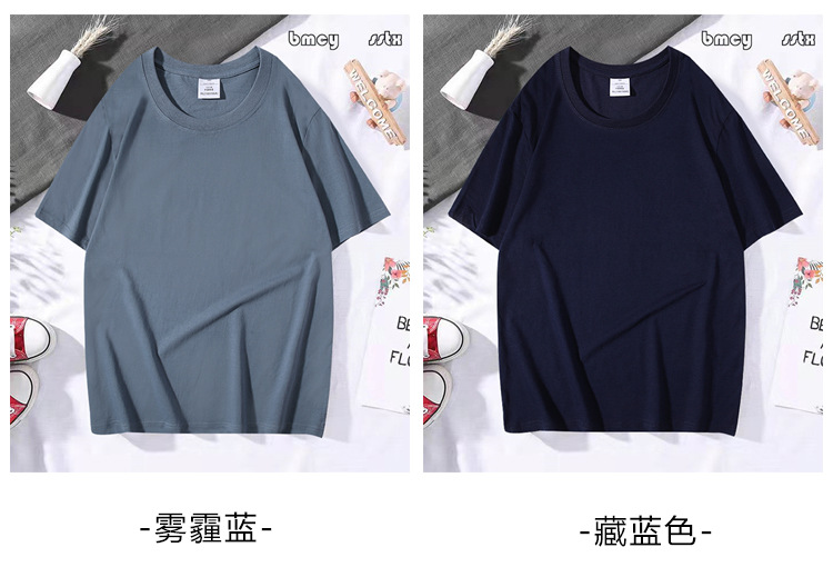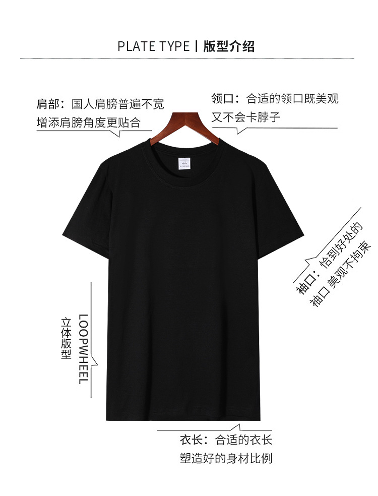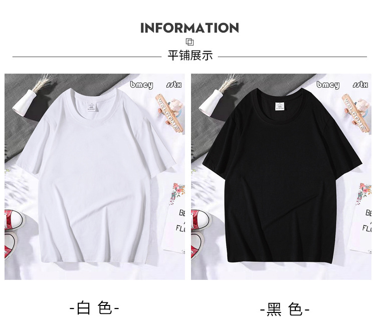 200g 단색면 느슨한 어깨 티셔츠 흑백 대형 남성 반팔 티셔츠 남성 및 여성 맞춤형 인쇄 반소매스토어 가기