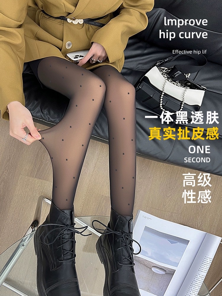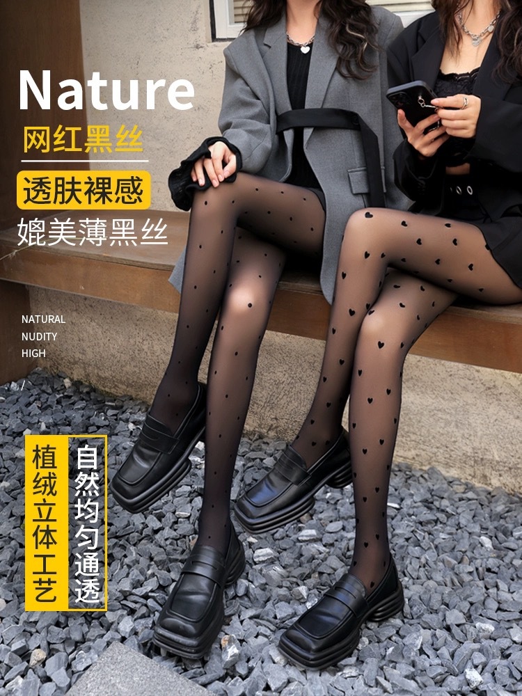 웨이브 포인트 사랑 실크 스타킹 여성의 봄 가을과 겨울 벨벳 두꺼운 블랙 실크 슬리밍 페이크 침투 라이트 레그 아티팩트 레터 팬티 스타킹