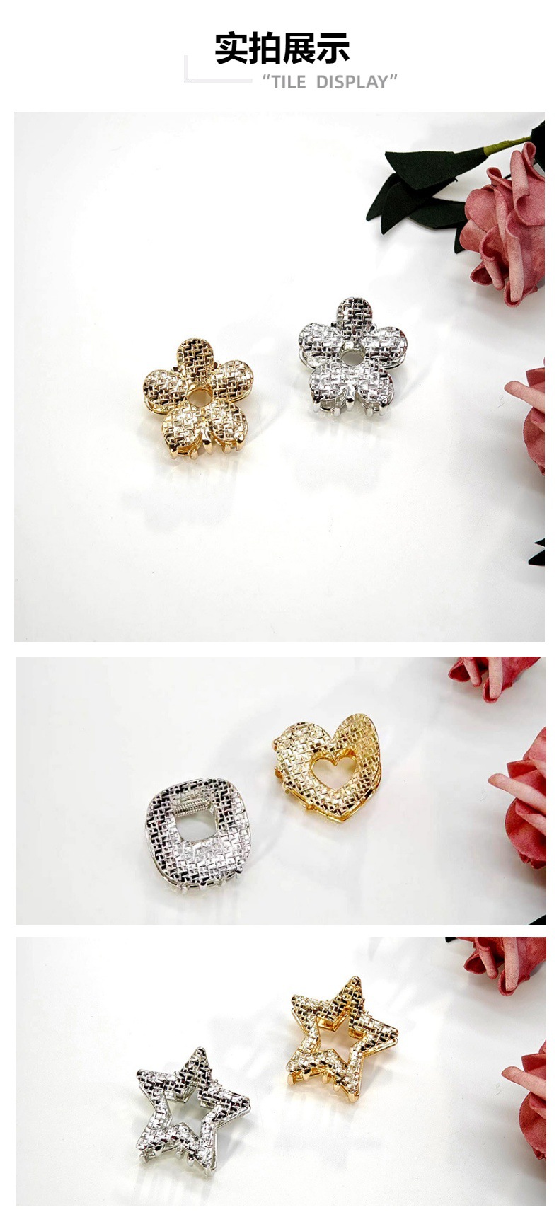 합금 스몰 사이즈 그립 고급 센스 백 헤드 포니 테일 타이 클립 헤어 액세서리 하트 속이 빈 다섯개 별 부러진 머리 앞머리 클립스토어 가기