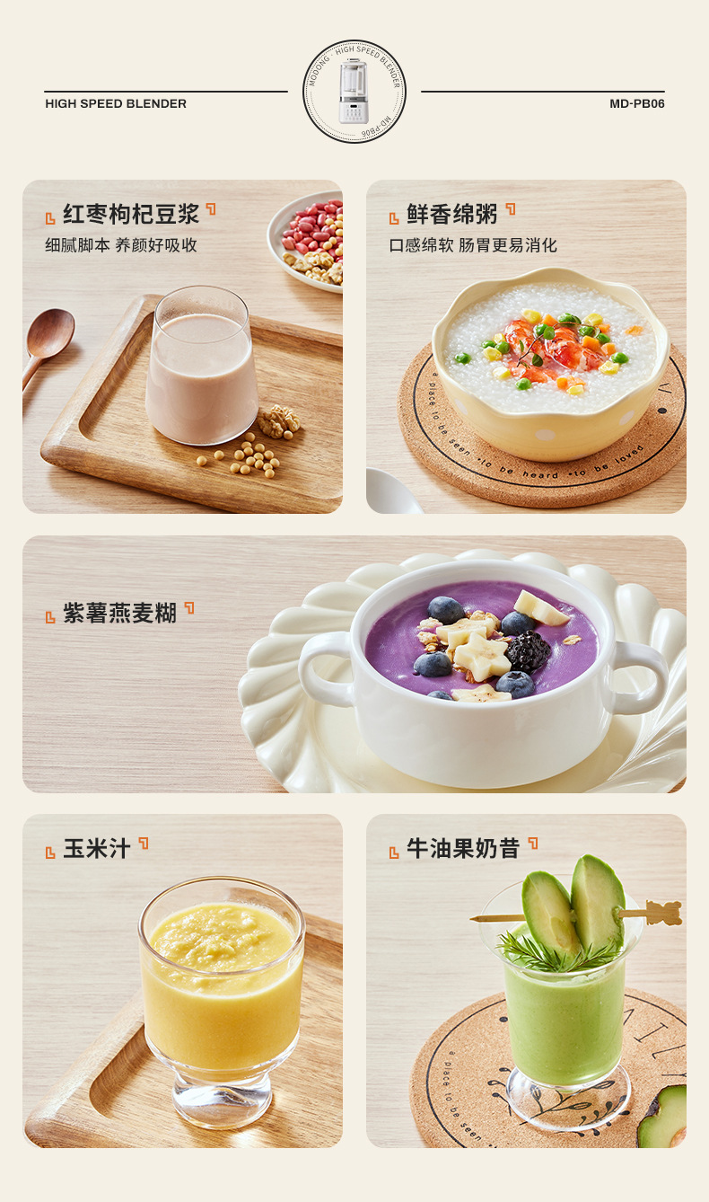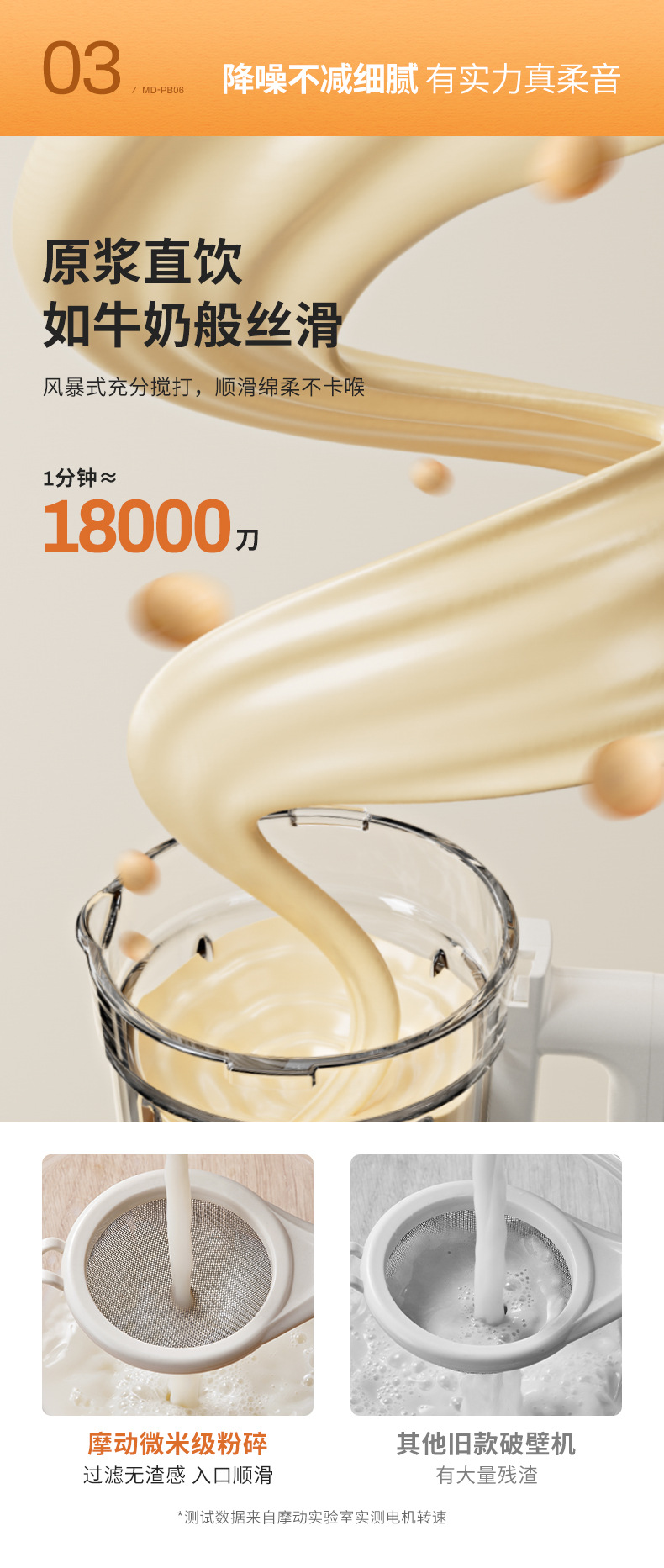 5.400w强力搅拌,软硬食材都能破壁,各类五谷药材直接磨成细粉,细腻如烟无粗粒,无需过筛