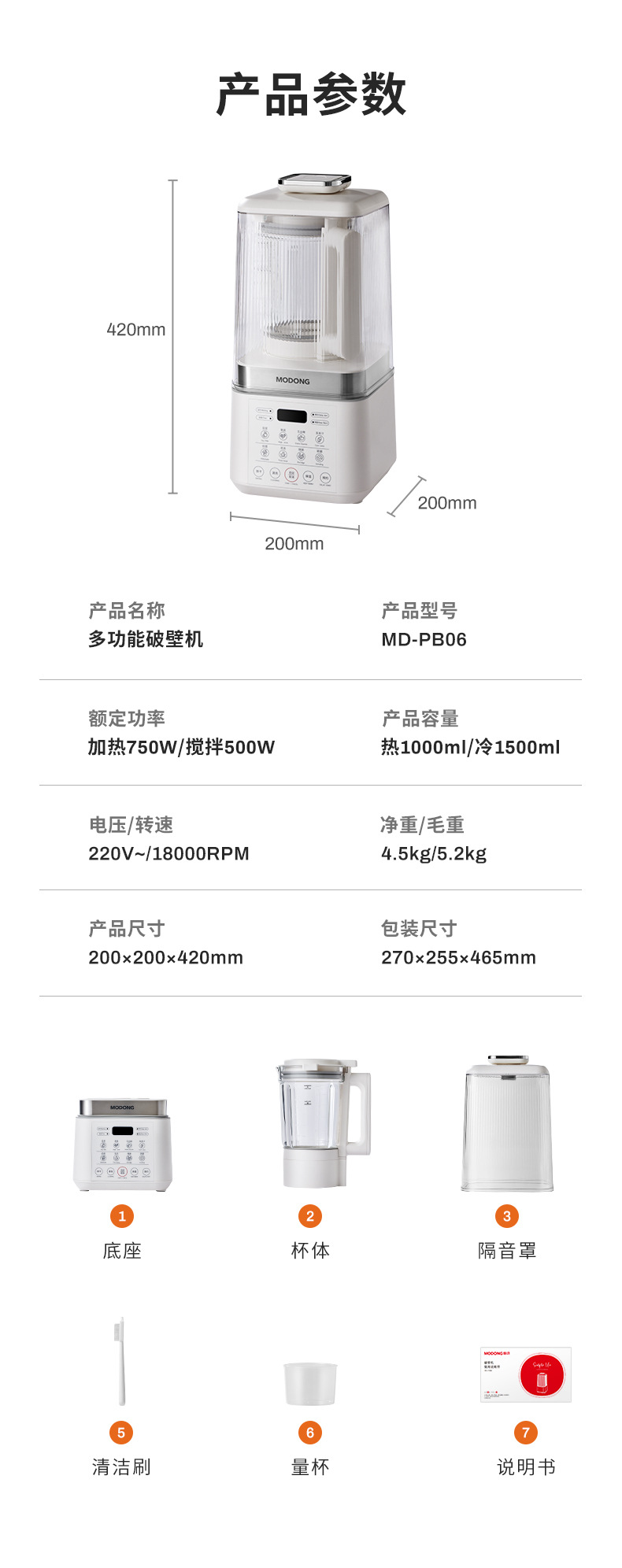 2.内置800w功率,快速加热,美味不用久等。一键清洗,2分钟快速清洁杯内污迹,解放双手,避免清洁过程中手误触刀片受伤