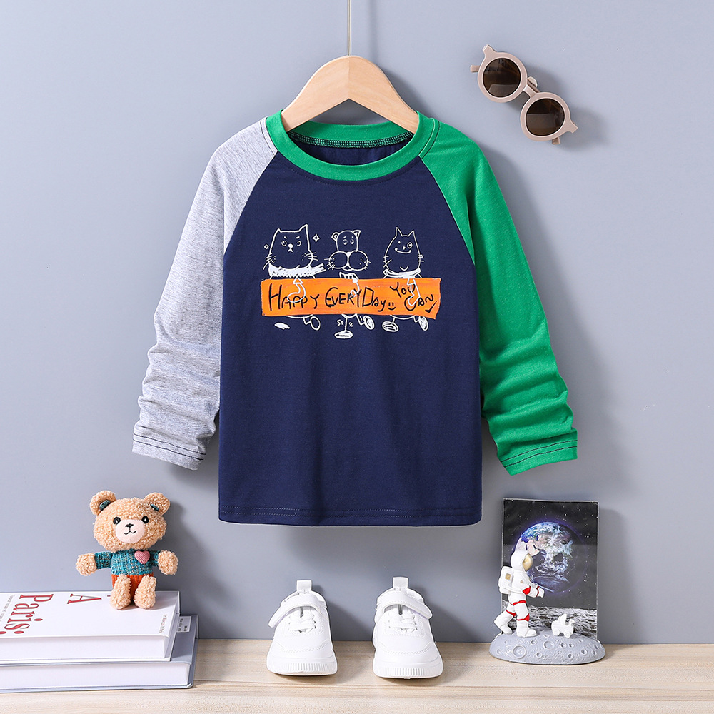 남아용 봄 가을 한국 스타일 긴팔 티셔츠 아동복 만화 캐릭터 상의 인기 아동복 봄 티셔츠 남아 가을옷