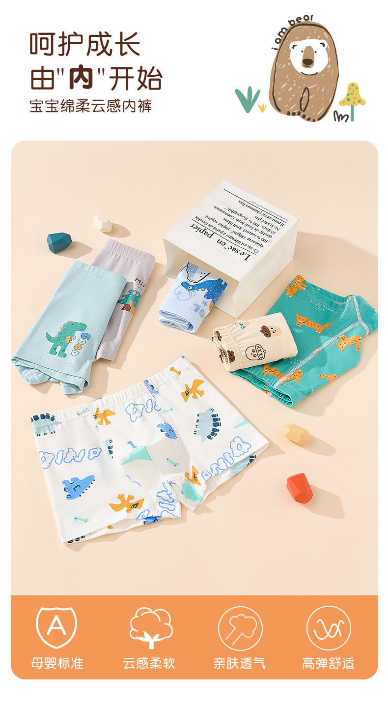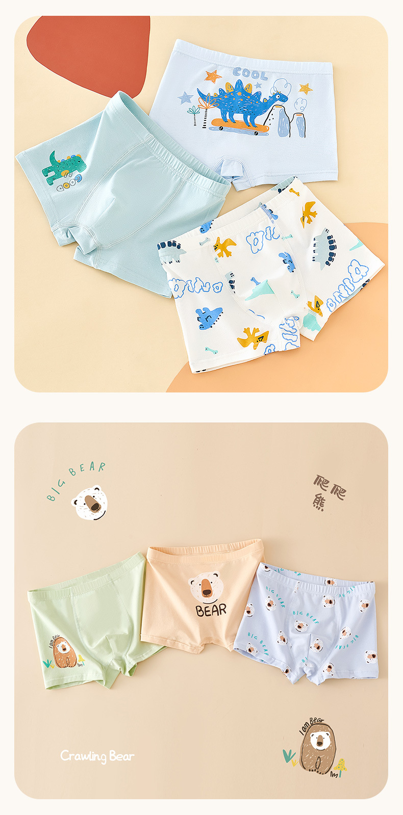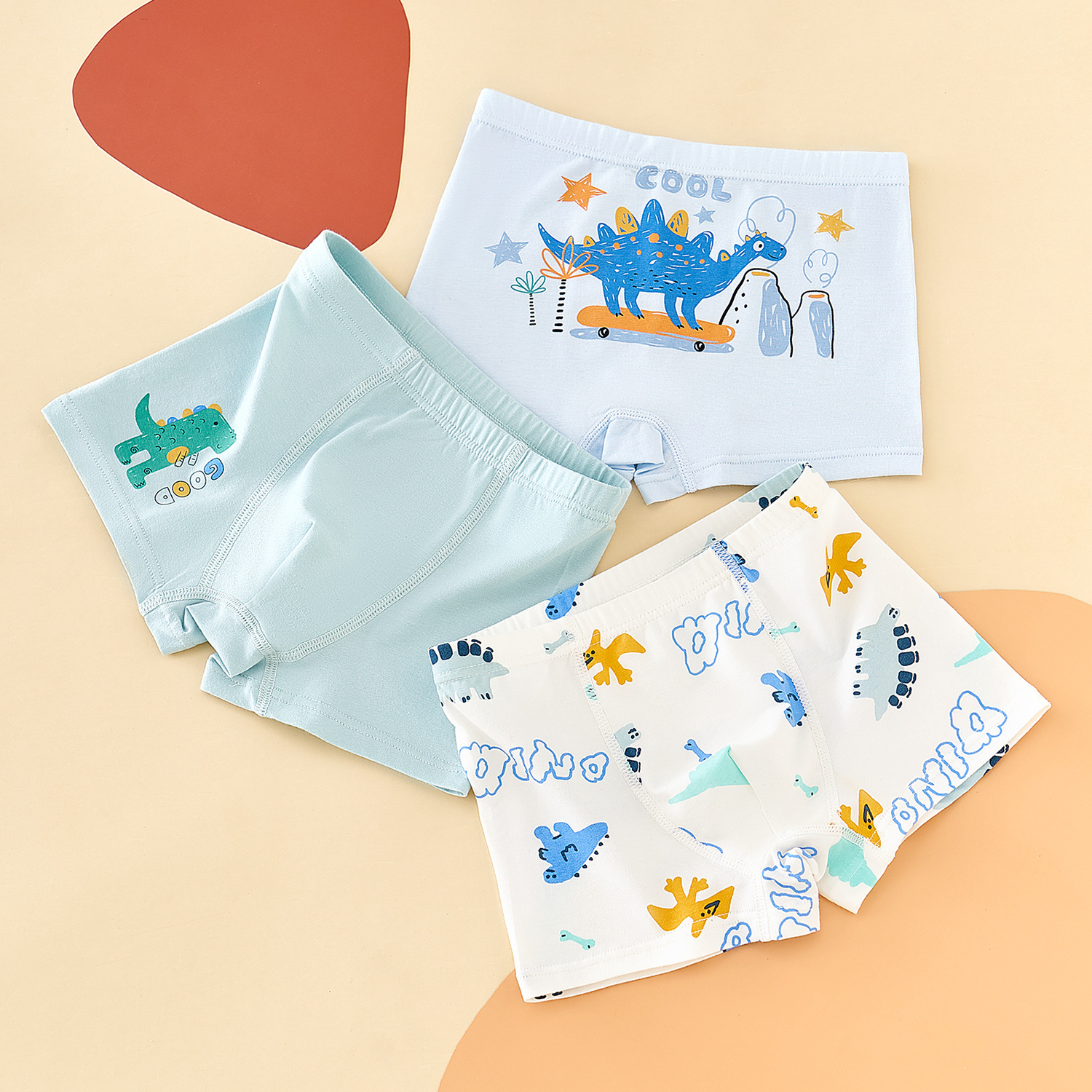 아기 소년의 가을과 겨울 속옷 순면 어린이 소년의 뼈없는 복서 3-7 세 만화 공룡 클래스 A스토어 가기