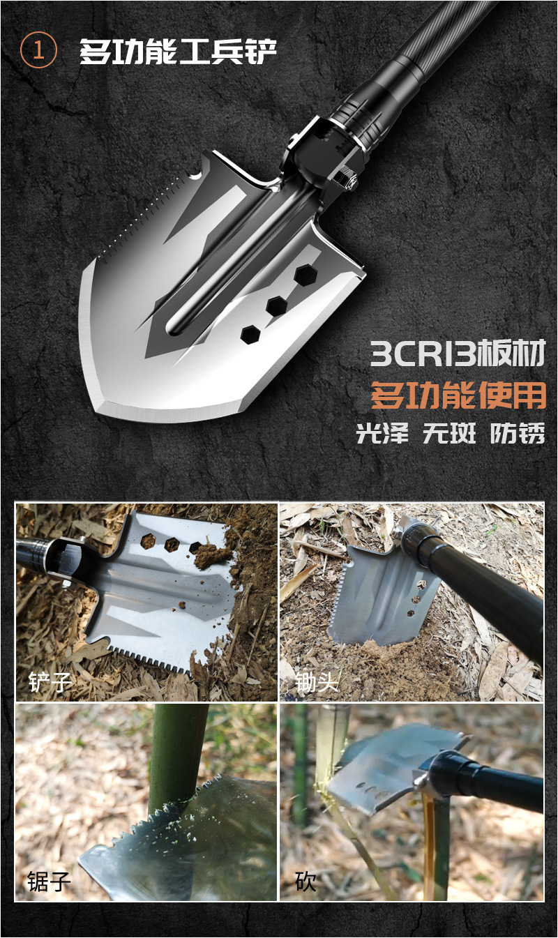 엔지니어링 삽 생존 접이식 야외 다기능 차량 장착 군용 삽 세트 도끼 삽 비상 캠핑 세트스토어 가기