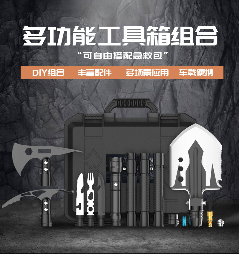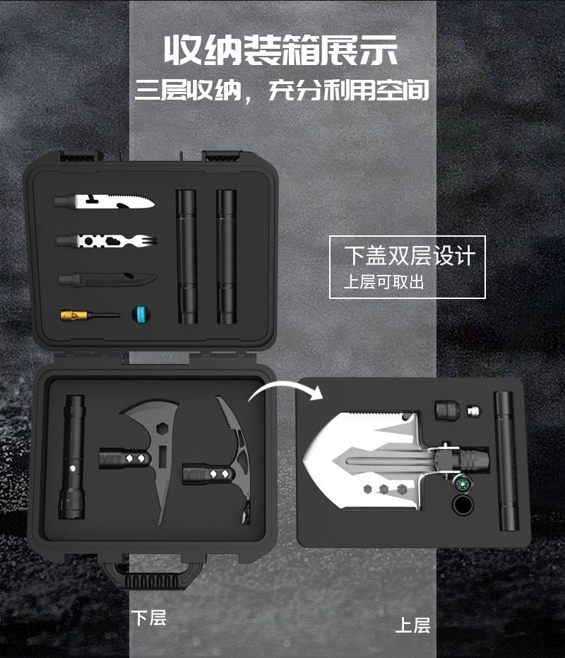 엔지니어링 삽 생존 접이식 야외 다기능 차량 장착 군용 삽 세트 도끼 삽 비상 캠핑 세트