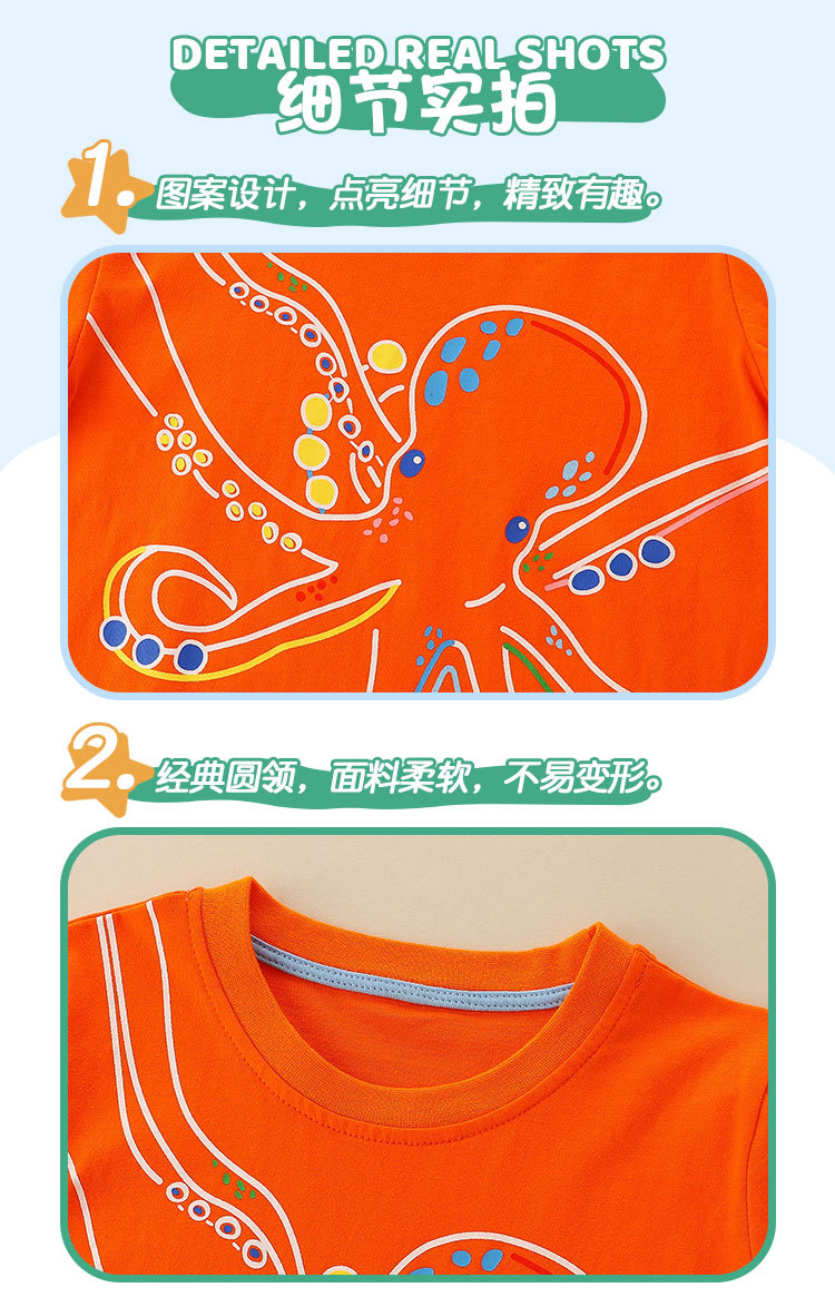 25 여름 새 소년 티셔츠 유럽과 미국 스타일의 만화 문어 인쇄 어린이 라운드 넥 반팔상의스토어 가기