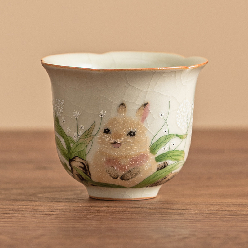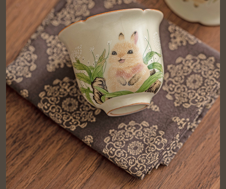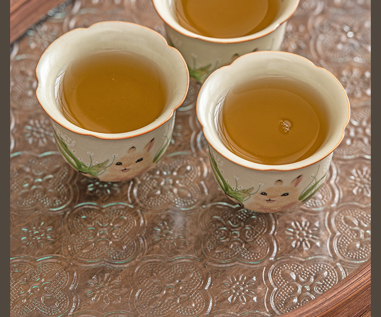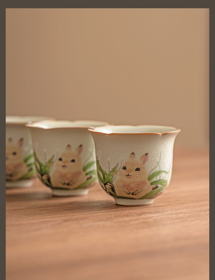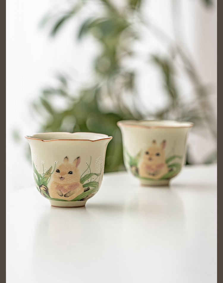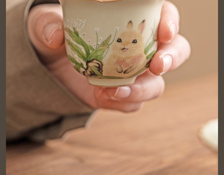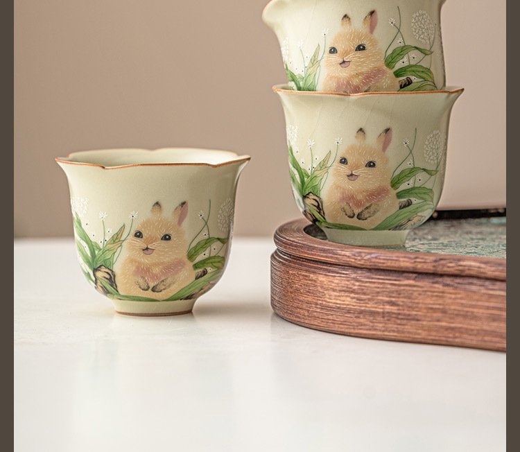 토끼 Ruyao Kwai 입 꽃잎 컵 세라믹 쿵푸 티 컵 마스터 컵 싱글 컵 귀여운 차 세트 차 시음 컵 티컵
