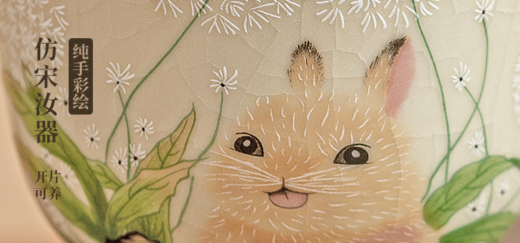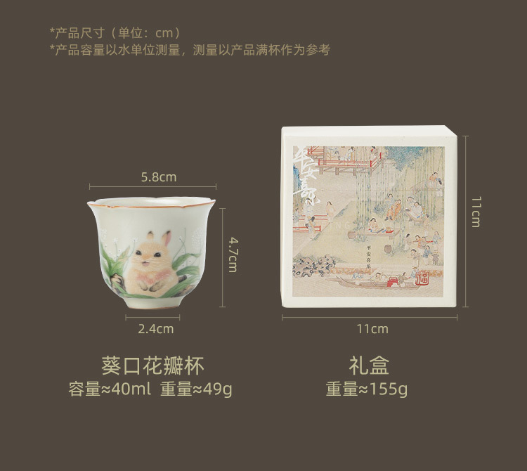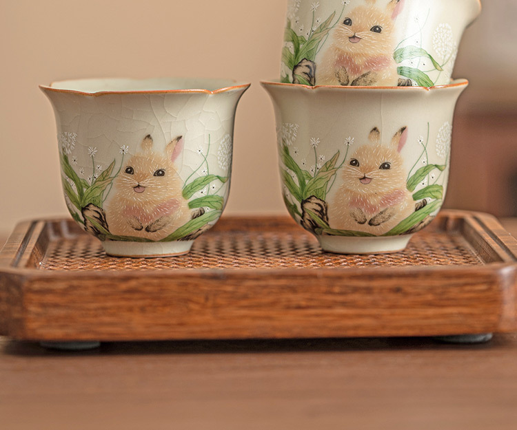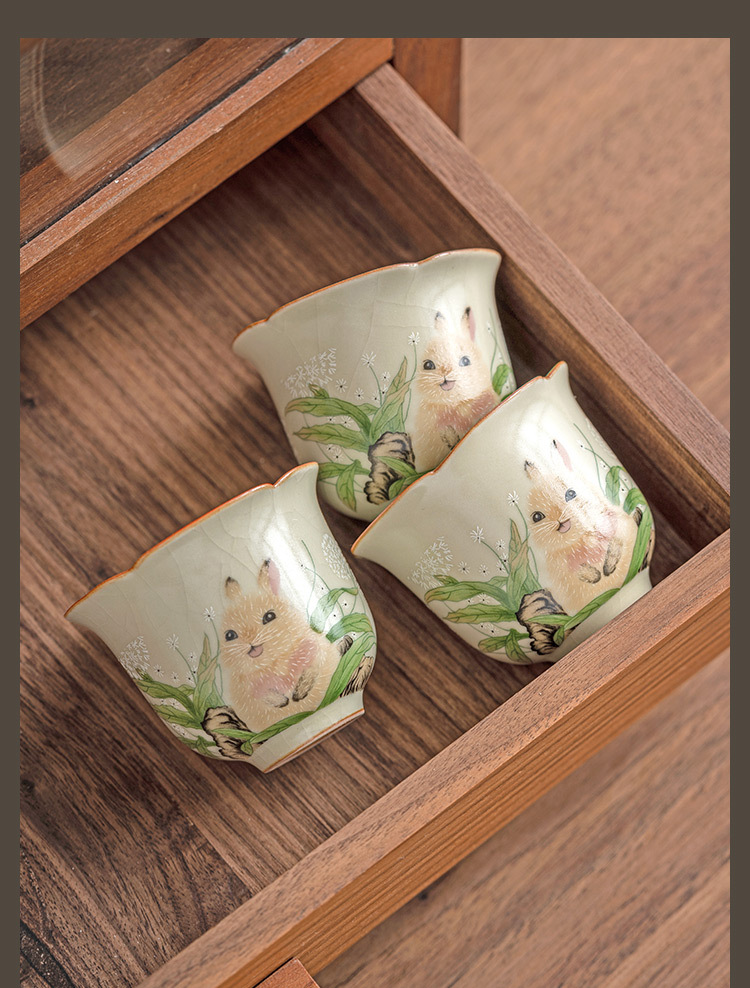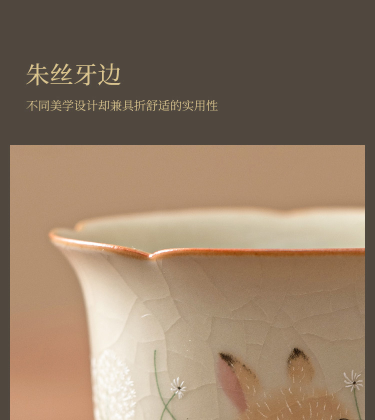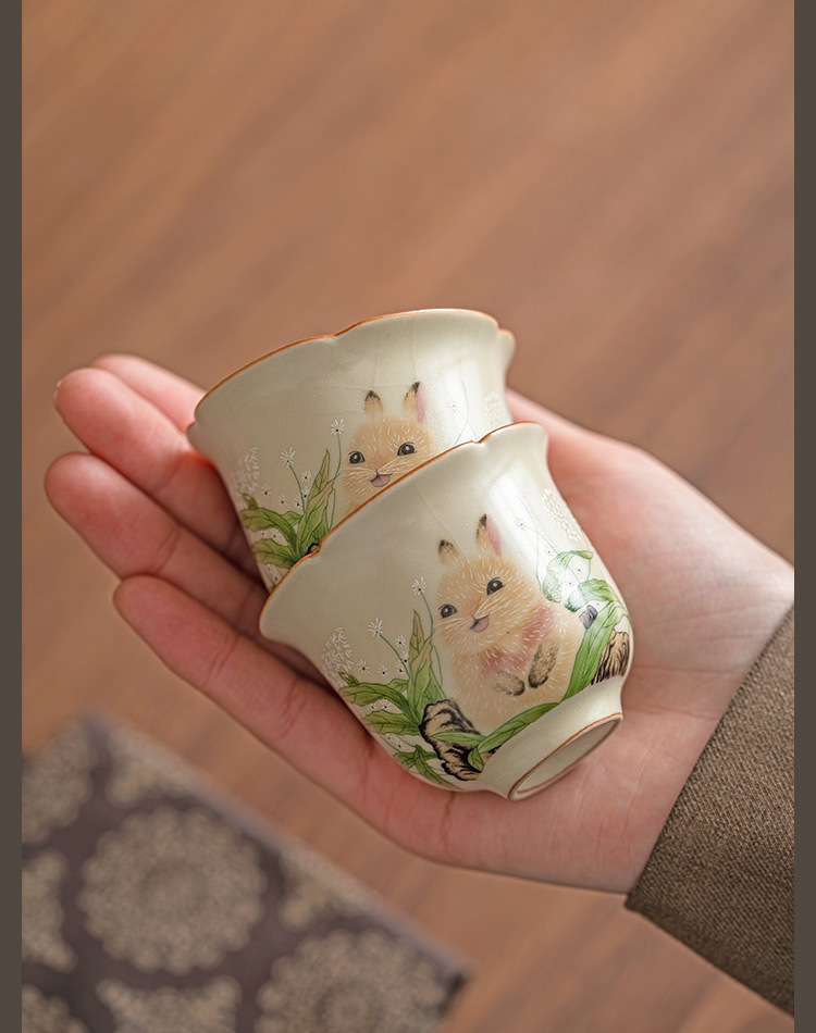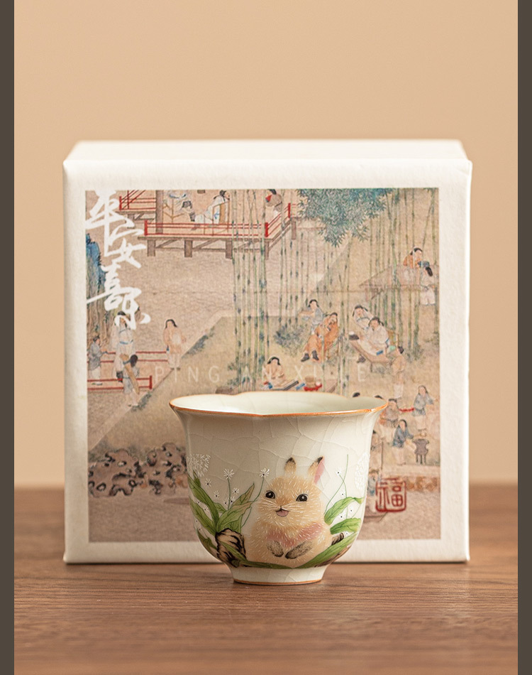 토끼 Ruyao Kwai 입 꽃잎 컵 세라믹 쿵푸 티 컵 마스터 컵 싱글 컵 귀여운 차 세트 차 시음 컵 티컵