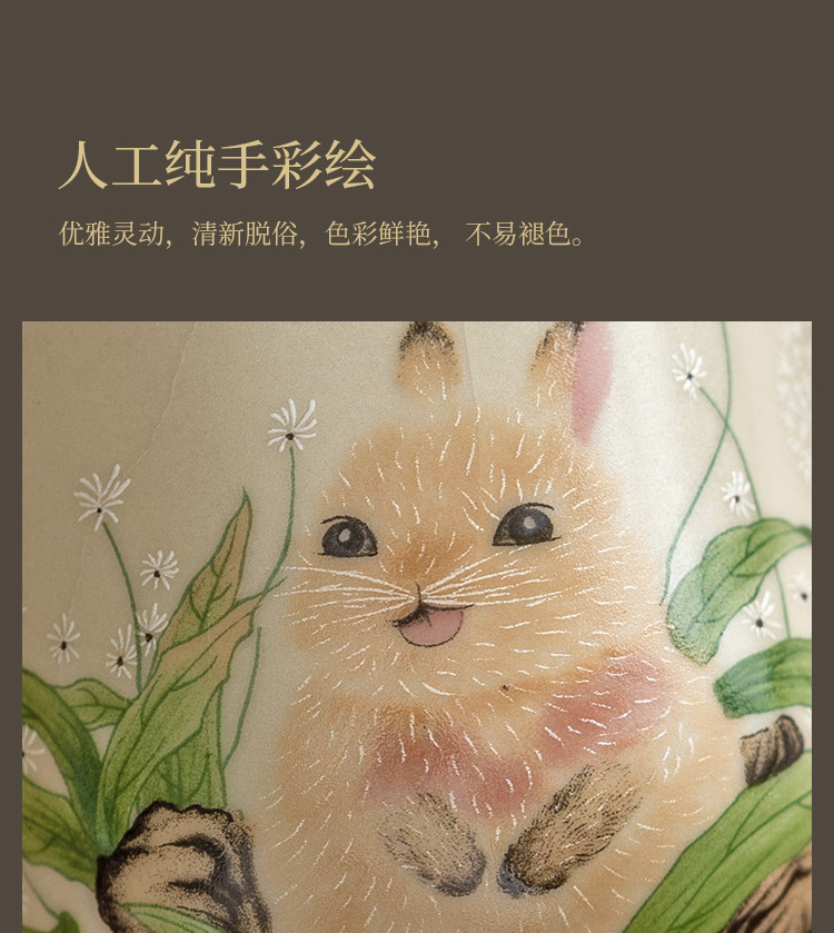 토끼 Ruyao Kwai 입 꽃잎 컵 세라믹 쿵푸 티 컵 마스터 컵 싱글 컵 귀여운 차 세트 차 시음 컵 티컵스토어 가기
