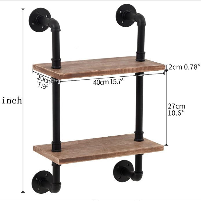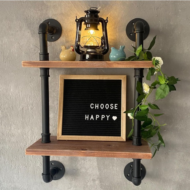 국경 간 산업 파이프 플로팅 욕실 선반 소박한 나무 사다리 책장 벽걸이 형 소박한 나무 선반 거실 장식 선반