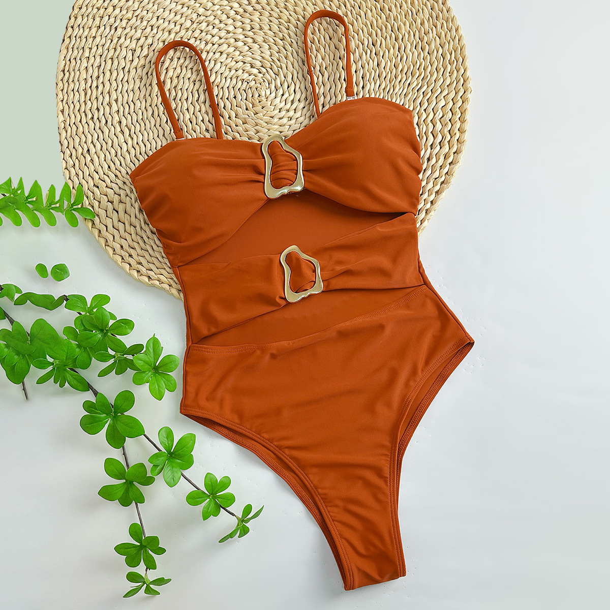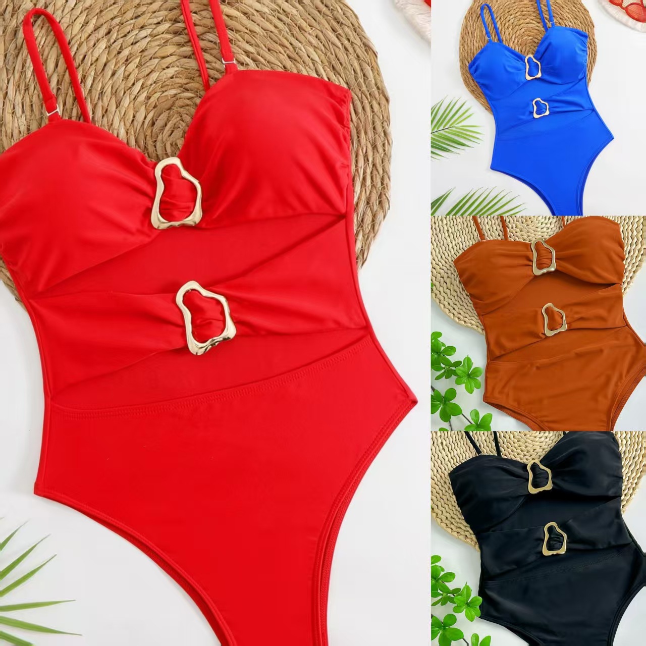 2024 유럽과 미국의 새로운 원피스 수영복 여성의 섹시한 프린트 넥 스트랩 백리스 비키니 여성의 아마존 대외 무역 수영복