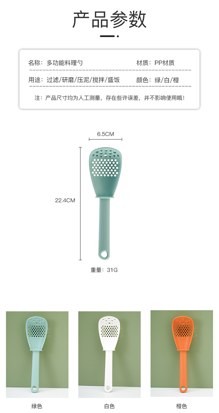다기능 요리 숟가락 Colander 가정용 주방 식품 등급 배수 숟가락 이유식 보충 도구 으깬 감자 숟가락