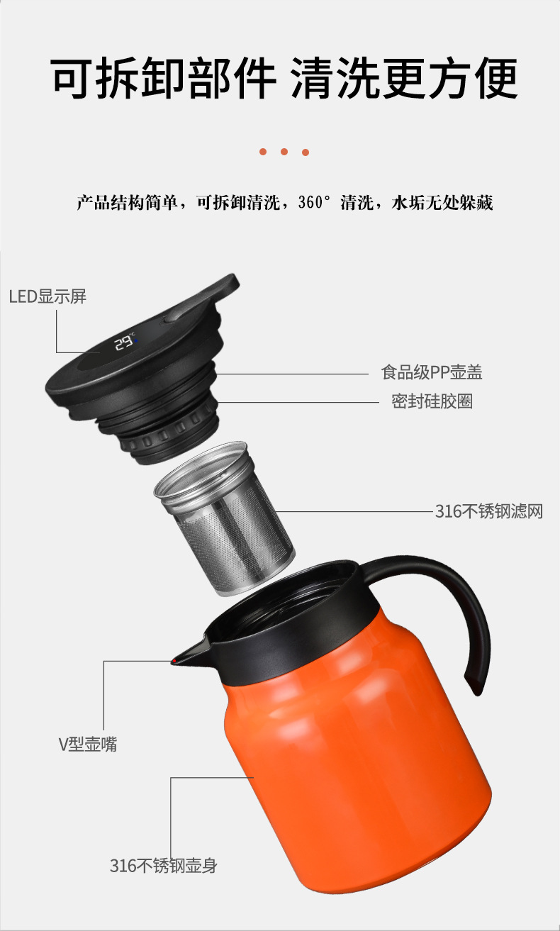 가정용 대용량 보온병 컵 316 스테인레스 스틸 라이너 스튜 티포트 맞춤형 로고가 새겨진 스마트 티 드레인