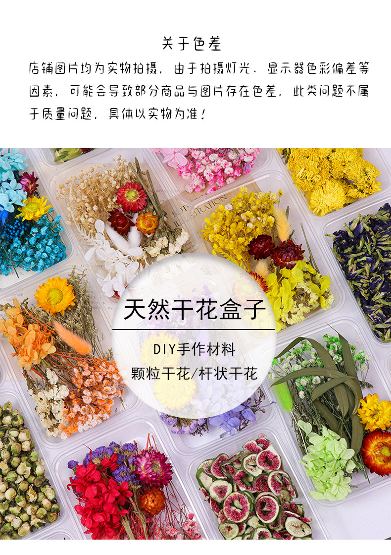영원한 꽃 말린 꽃 DIY 말린 꽃 머리 소재 가방 혼합 꽃 상자 DIY 아로마 테라피 촛불 수제 사진 프레임 영원한 꽃잎